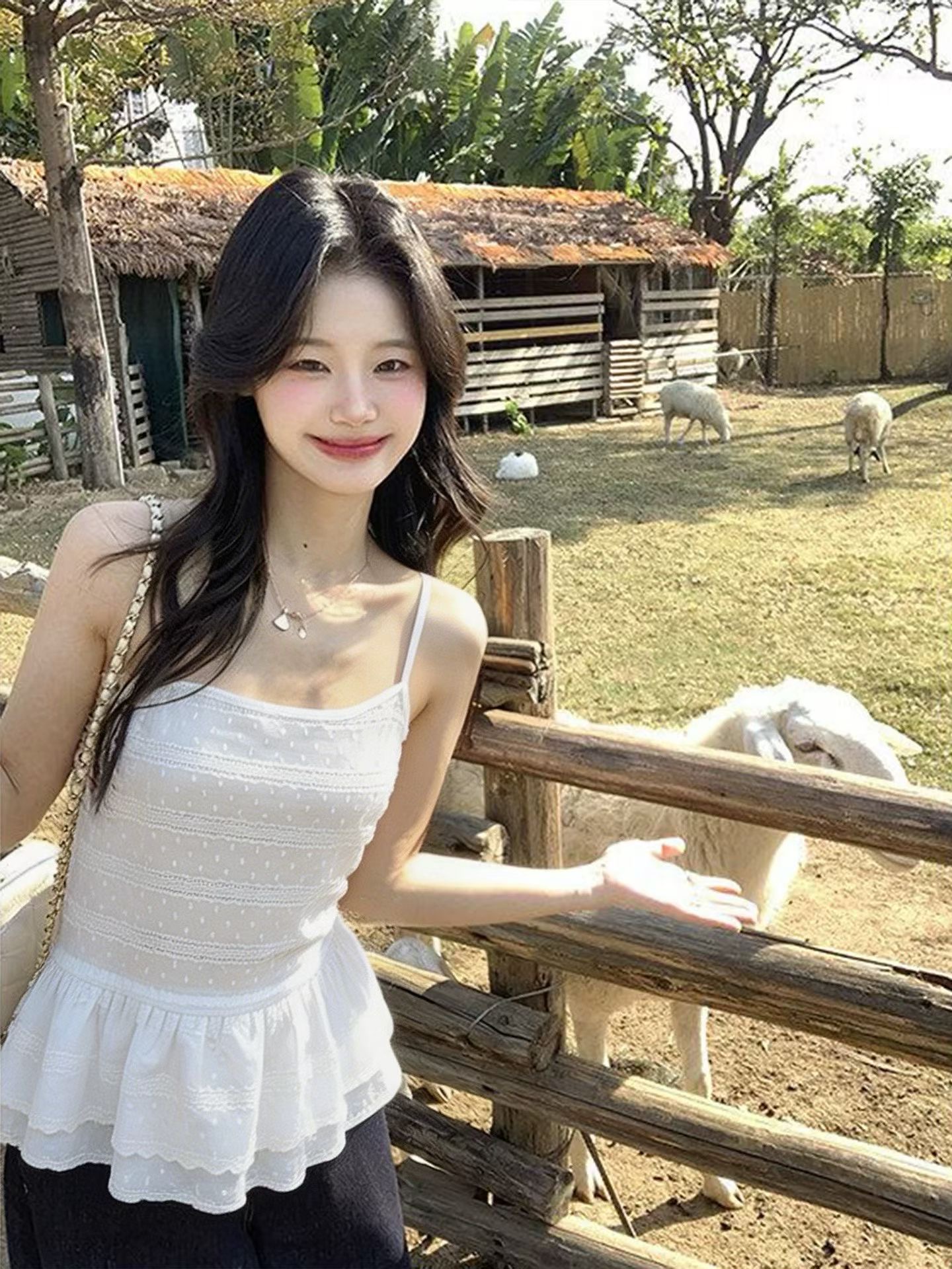 열세 개 2026 여름 새로운 한국 스타일 휴가 바람 캐미솔 작은 셔츠 투피스 세트 민소매 스택 착용 맨위
