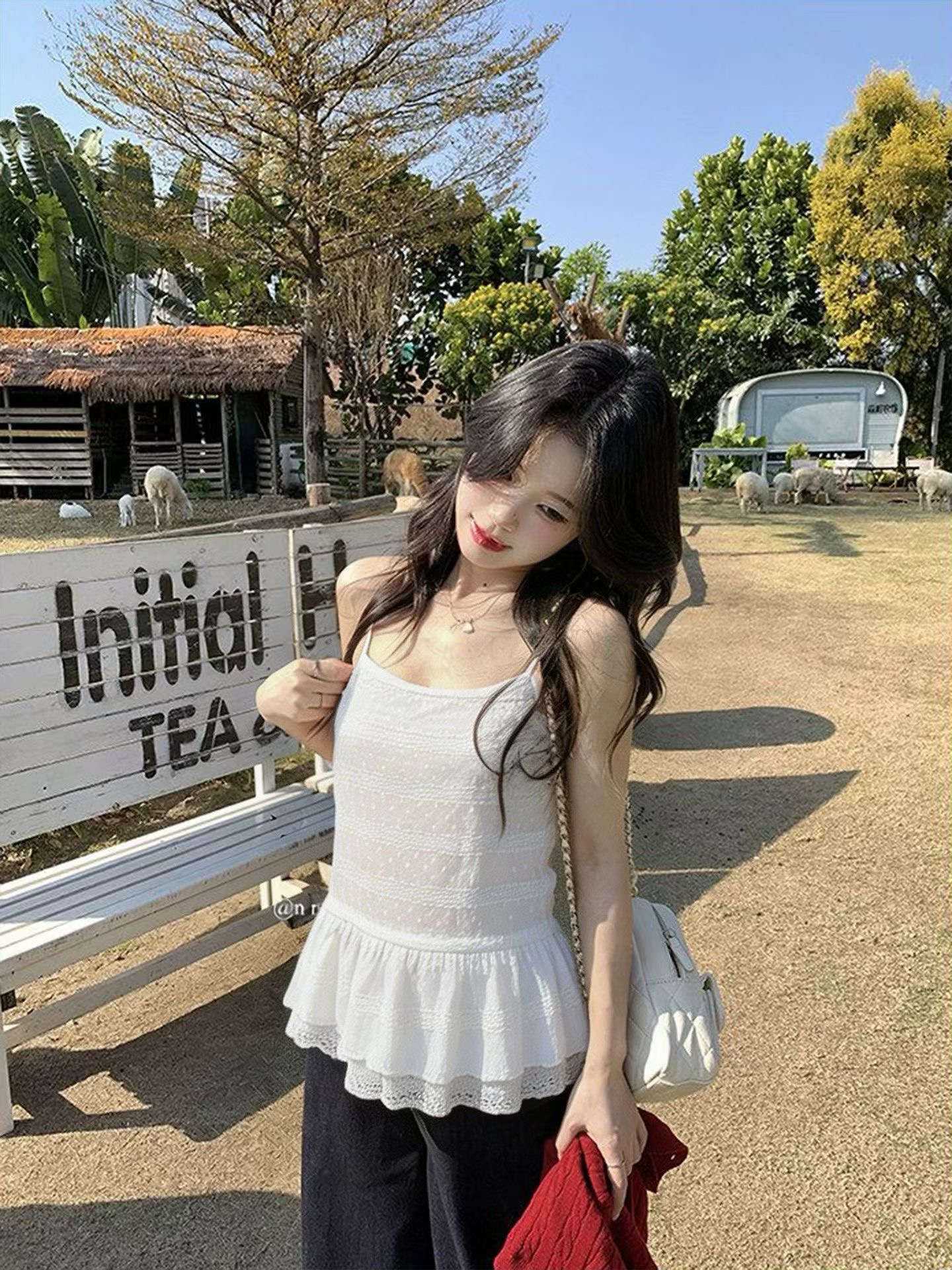화이트 레이스 레이스 밑단 스택 착용 캐미솔 여름 새로운