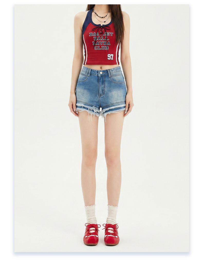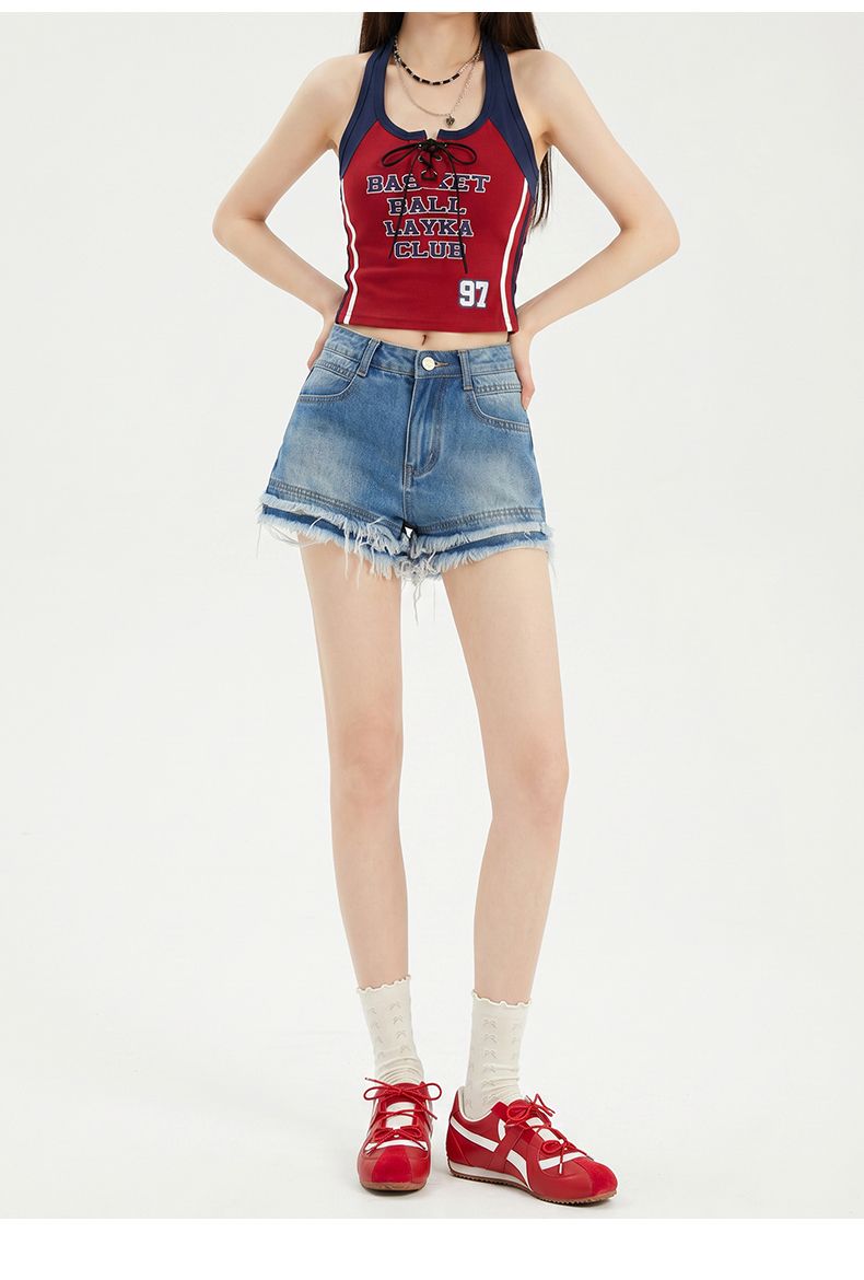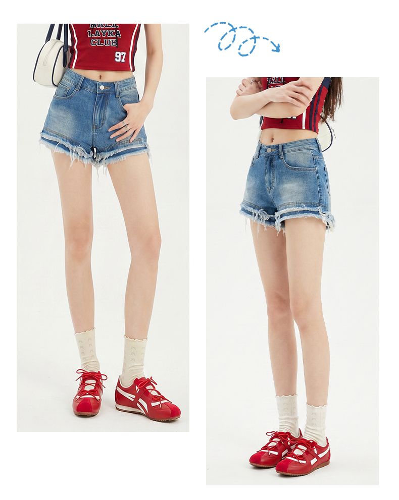 거친 가장자리 데님 반바지 여성 아메리칸 레트로 핫걸 한 마디 마 오래된 타이트 스커트 하이웨이스트 타이트 핫 바지 여성