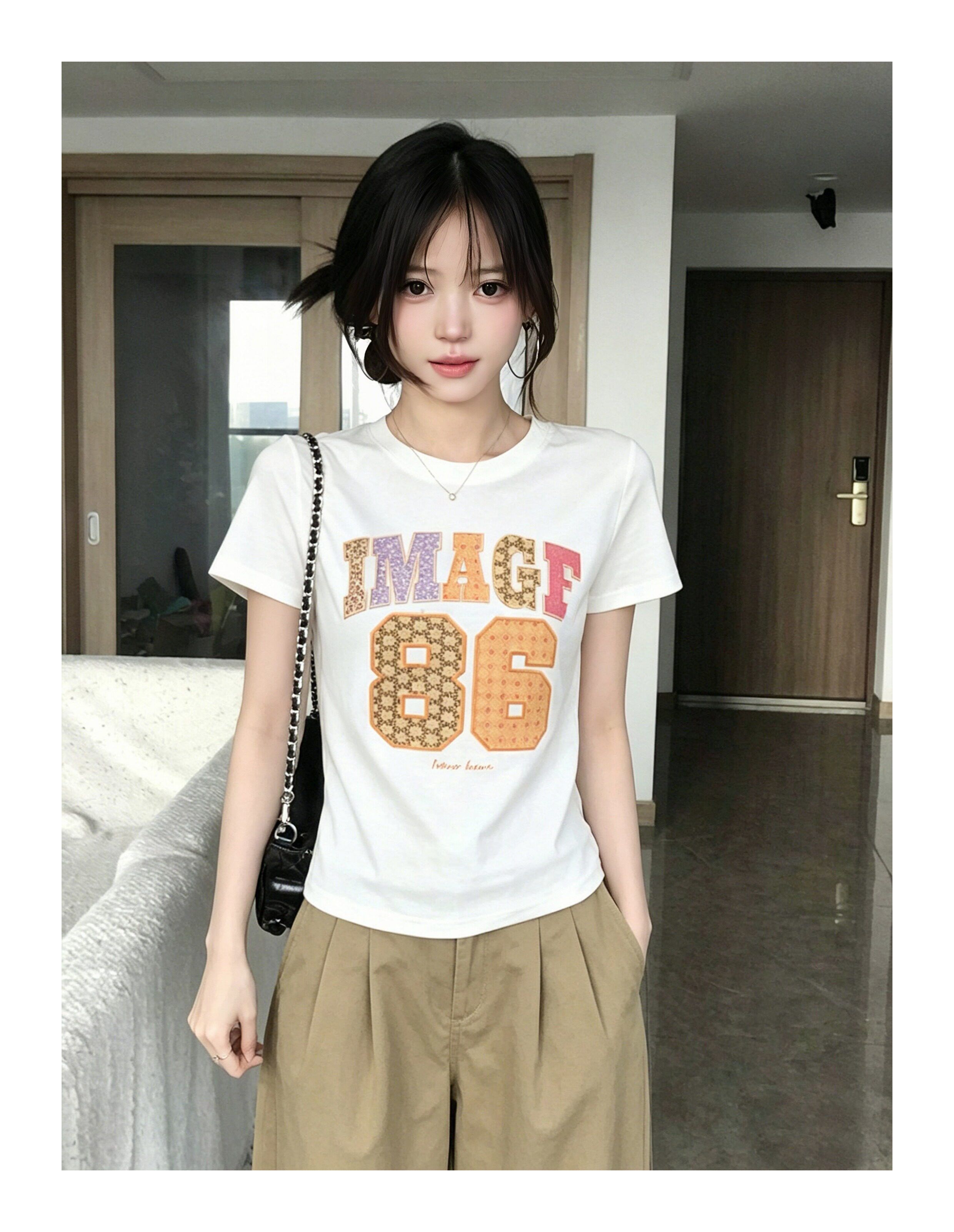 220 그램 92 면 8 암모니아 Lun 아메리칸 핫걸 비스듬한 어깨 알파벳 프린트 반팔 티셔츠 여성