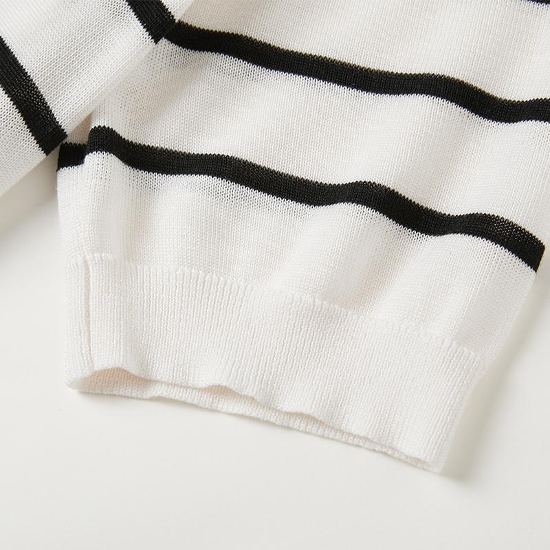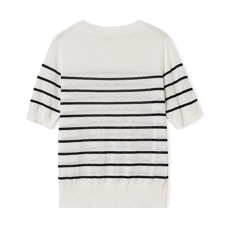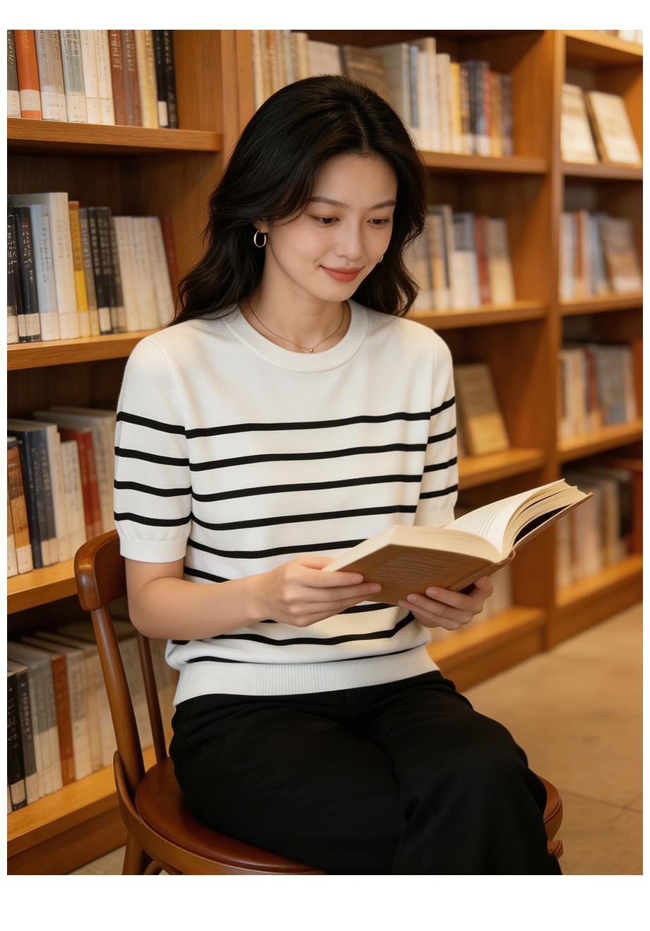여름 클래식 라이 경기 서울 주간 실크 패션 연령 감소 외국 가스 슬림해 보이는 다용도 라운드 넥 스트라이프 니트 반팔 맨위 여성