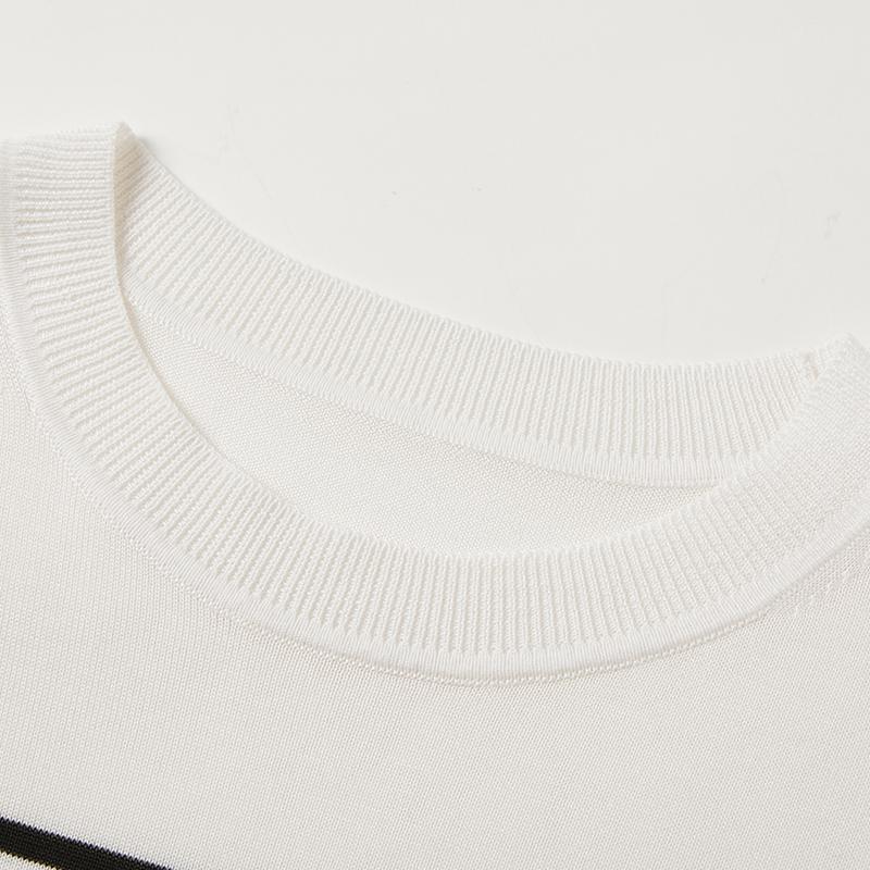 여름 새로운 라운드 넥 패션 다용도 빅 사이즈 반팔 스트라이프 품격 니트 스웨터 티셔츠 쇼트 스타일 얼음 실크 맨위 여성