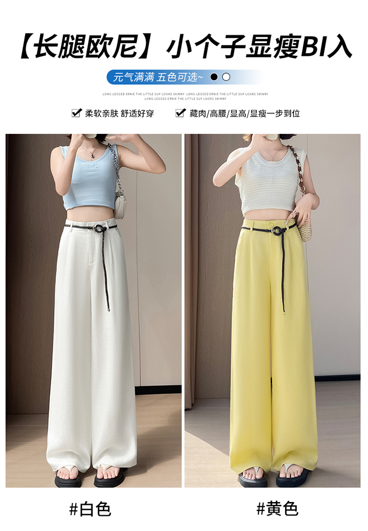 실사 2026 여름 새로운 주간 실크 아마 와이드 레그 팬츠 하이웨이스트 캐주얼 얼음 실크 바지 스트레이트 바닥 청소 바지 여성