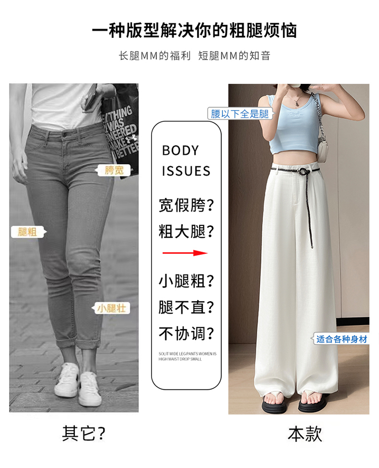 실사 2026 여름 새로운 얼음 실크 정장 바지 하이웨이스트 좁은 에디션 와이드 레그 팬츠 스트레이트 얇은 스타일 캐주얼 바닥 청소 바지 여성