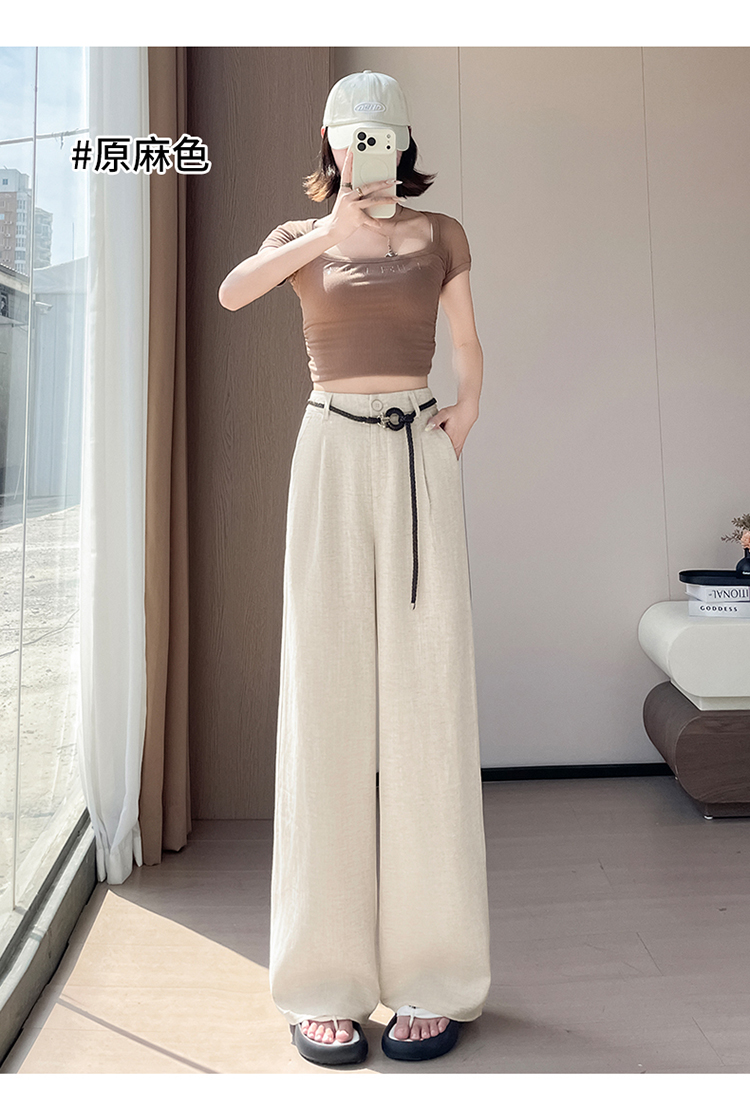 실사 2026 여름 새로운 주간 실크 아마 와이드 레그 팬츠 하이웨이스트 면 린넨 얇은 스타일 캐주얼 바닥 청소 바지 여성