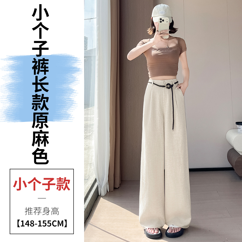 실사 2026 여름 새로운 주간 실크 아마 와이드 레그 팬츠 하이웨이스트 면 린넨 얇은 스타일 자외선 차단 스트레이트 바닥 청소 바지 여성
