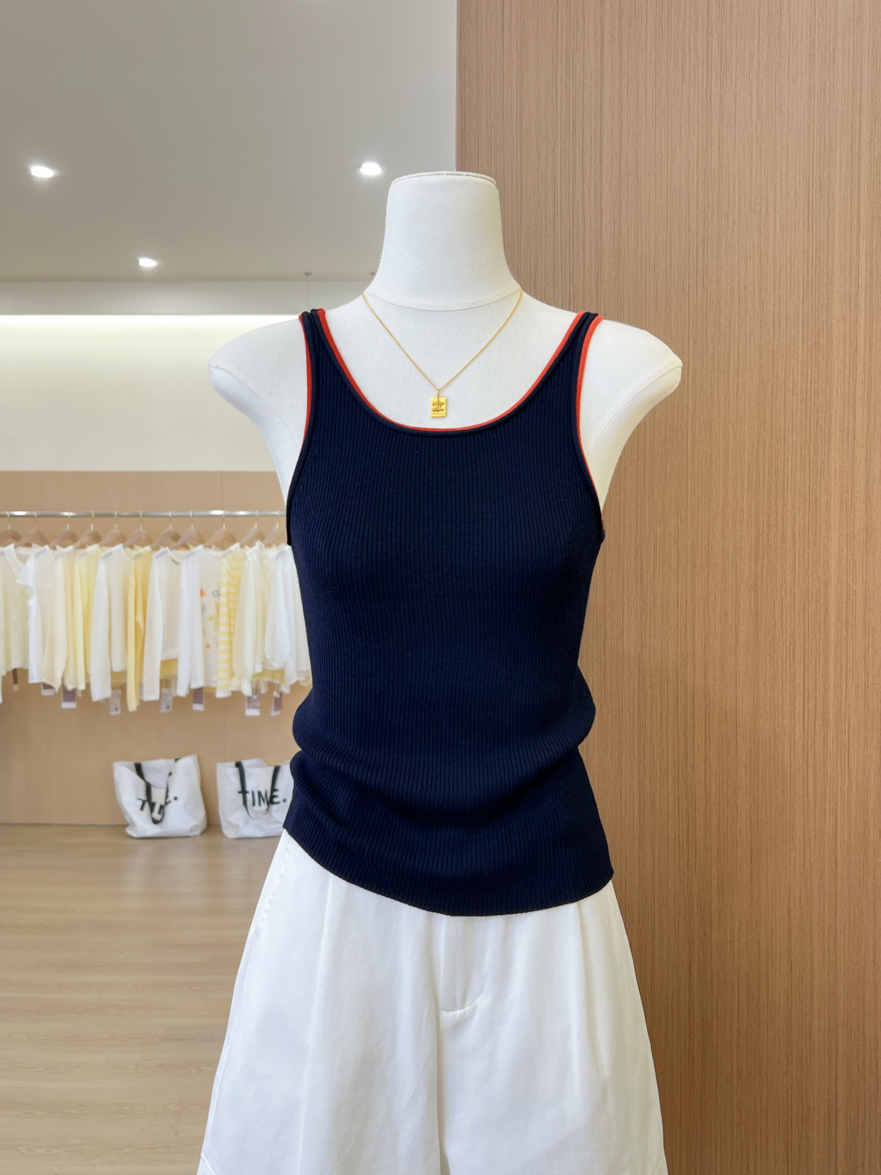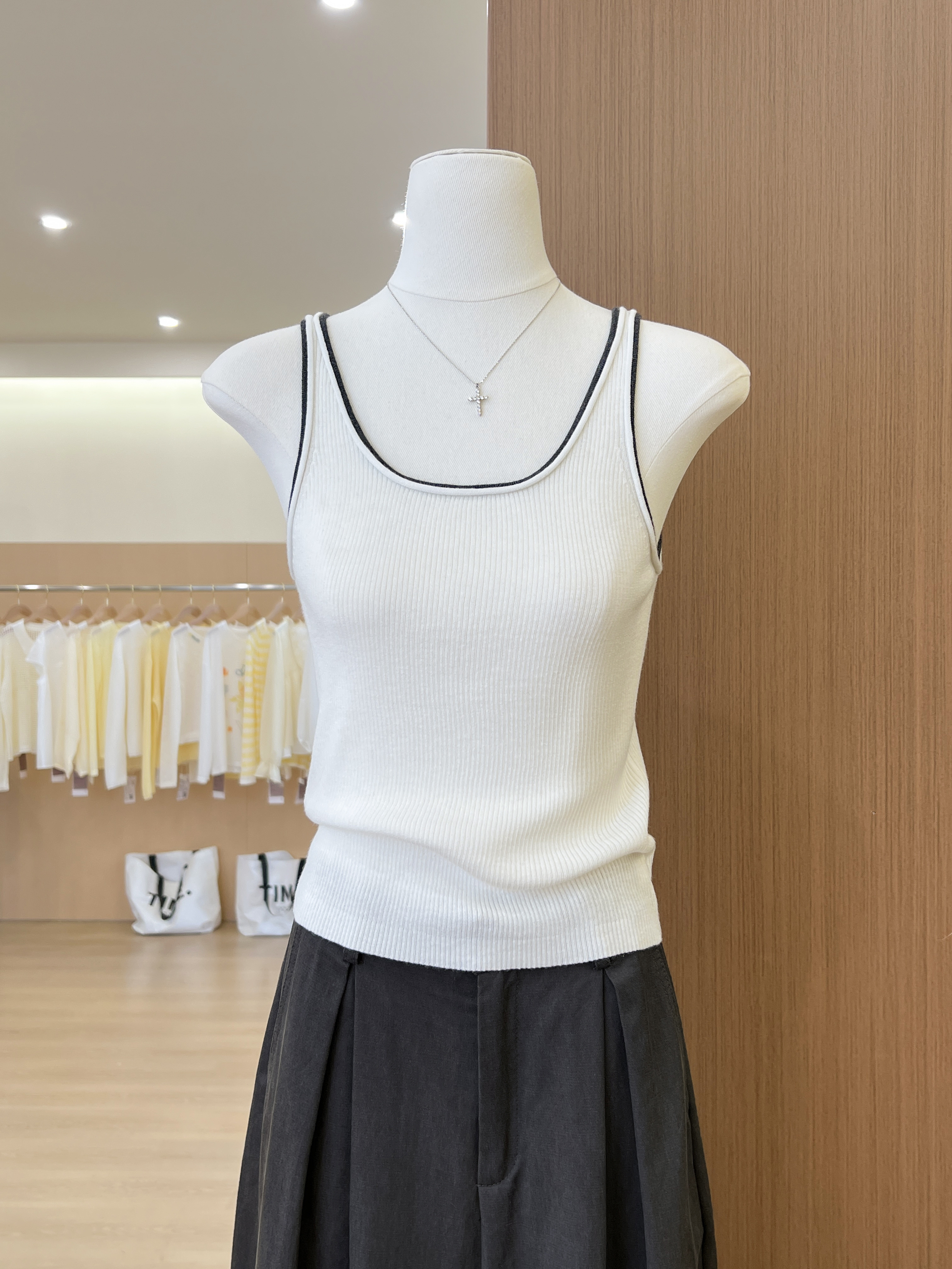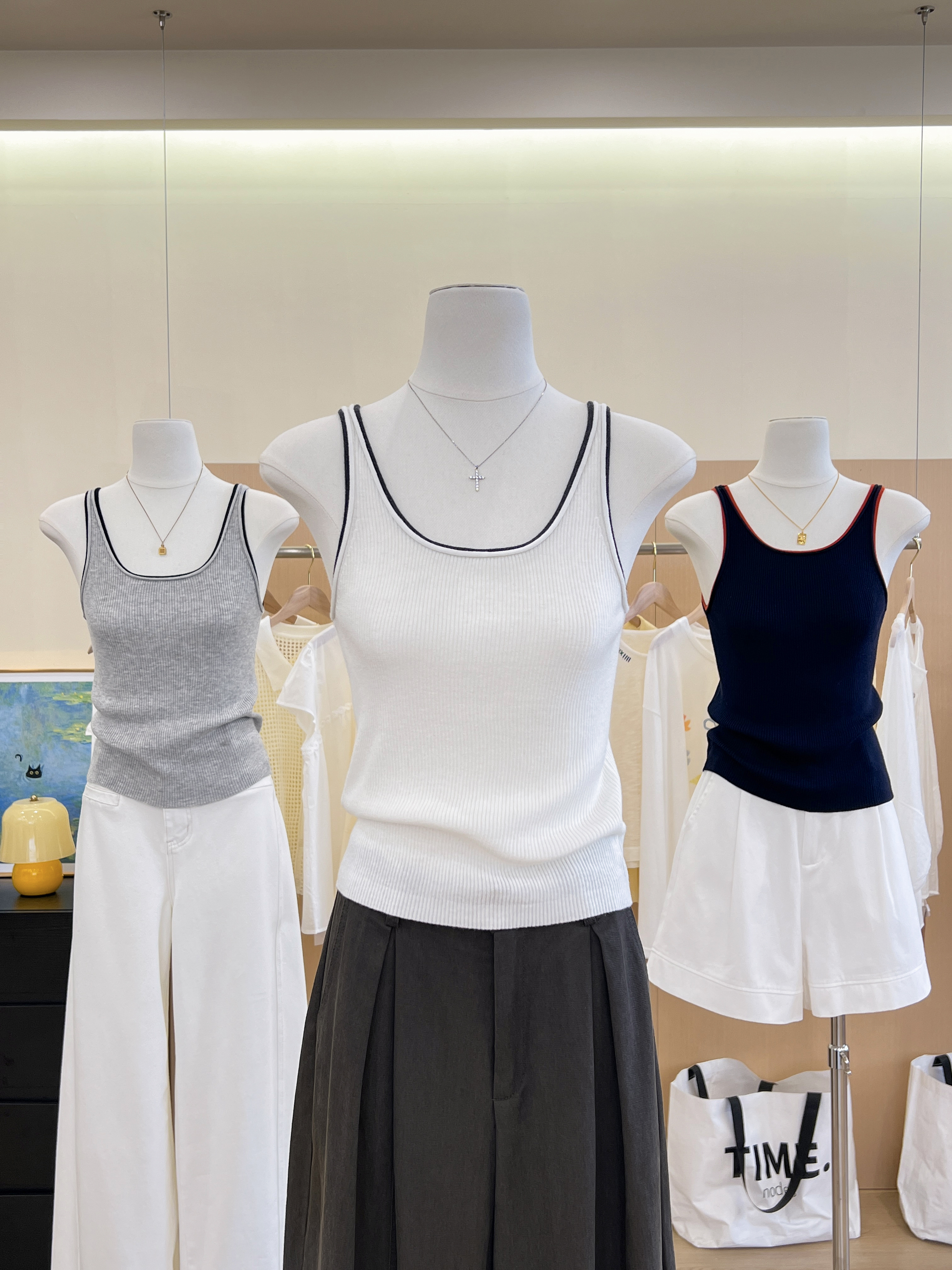 한 부서 디자인 센스 배색 니트 캐미솔 ins2025 봄 여름 u 칼라 민소매 몸매 가꾸기 맨위