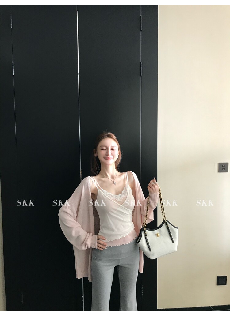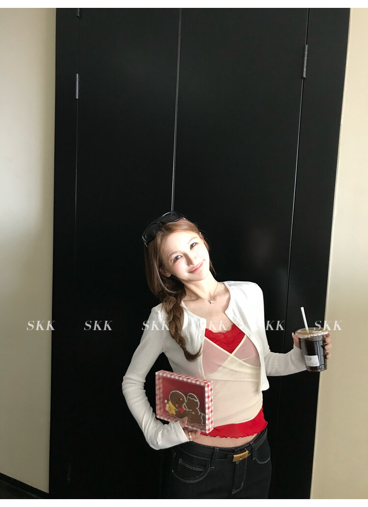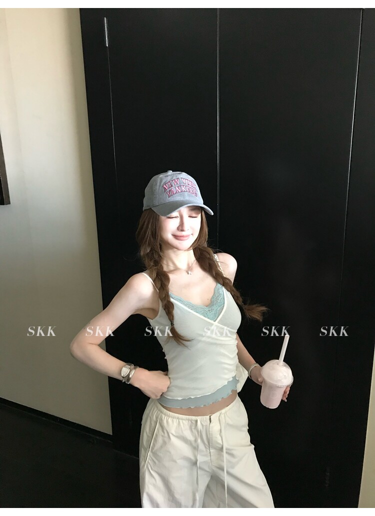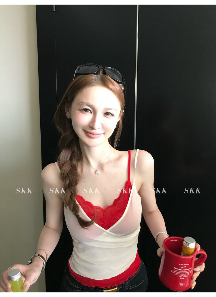 skk store 하트 비트 바 리 순수한 욕망 핫걸 스택 착용 페이크 레이어드 레이스 캐미솔 여름