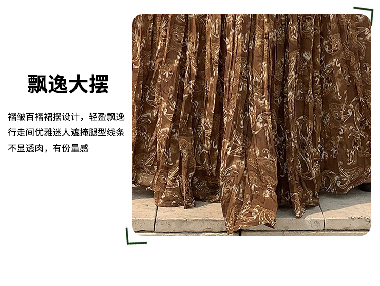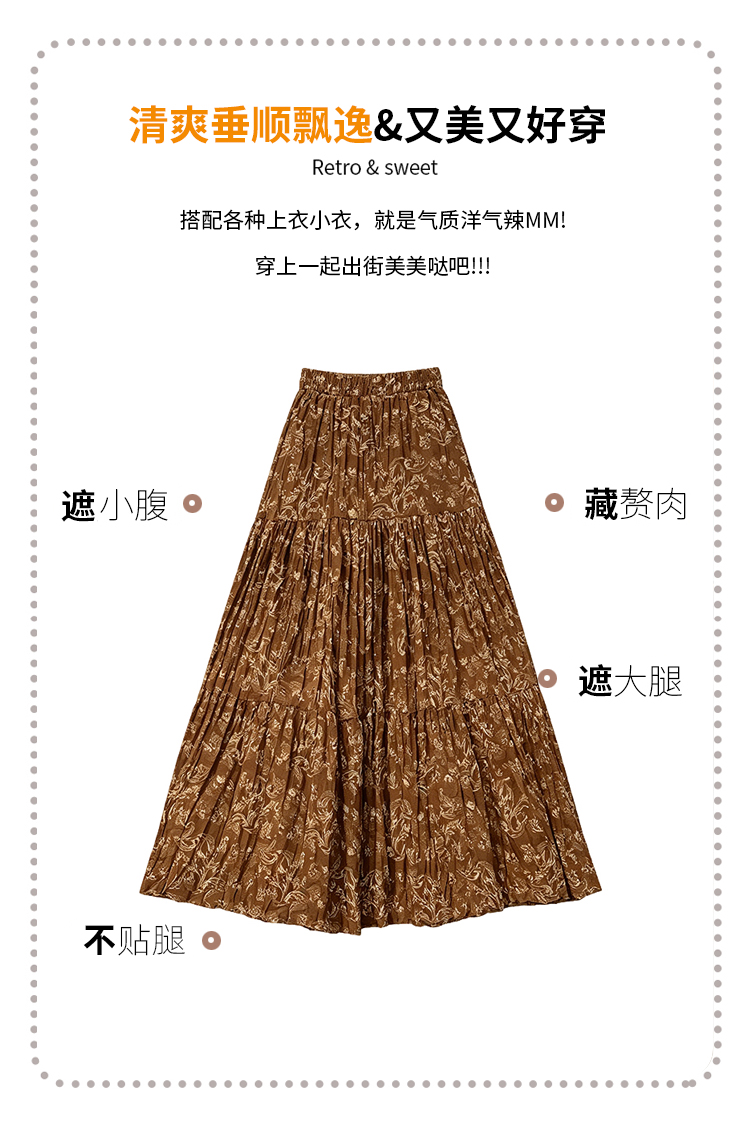 실사 2026 여름 표지 넓적 다리 슬림해 보이는 주름 쉬폰 캐슈 꽃 반신 한 마디 롱 스커트 큰 진자 우아한 요정 치마