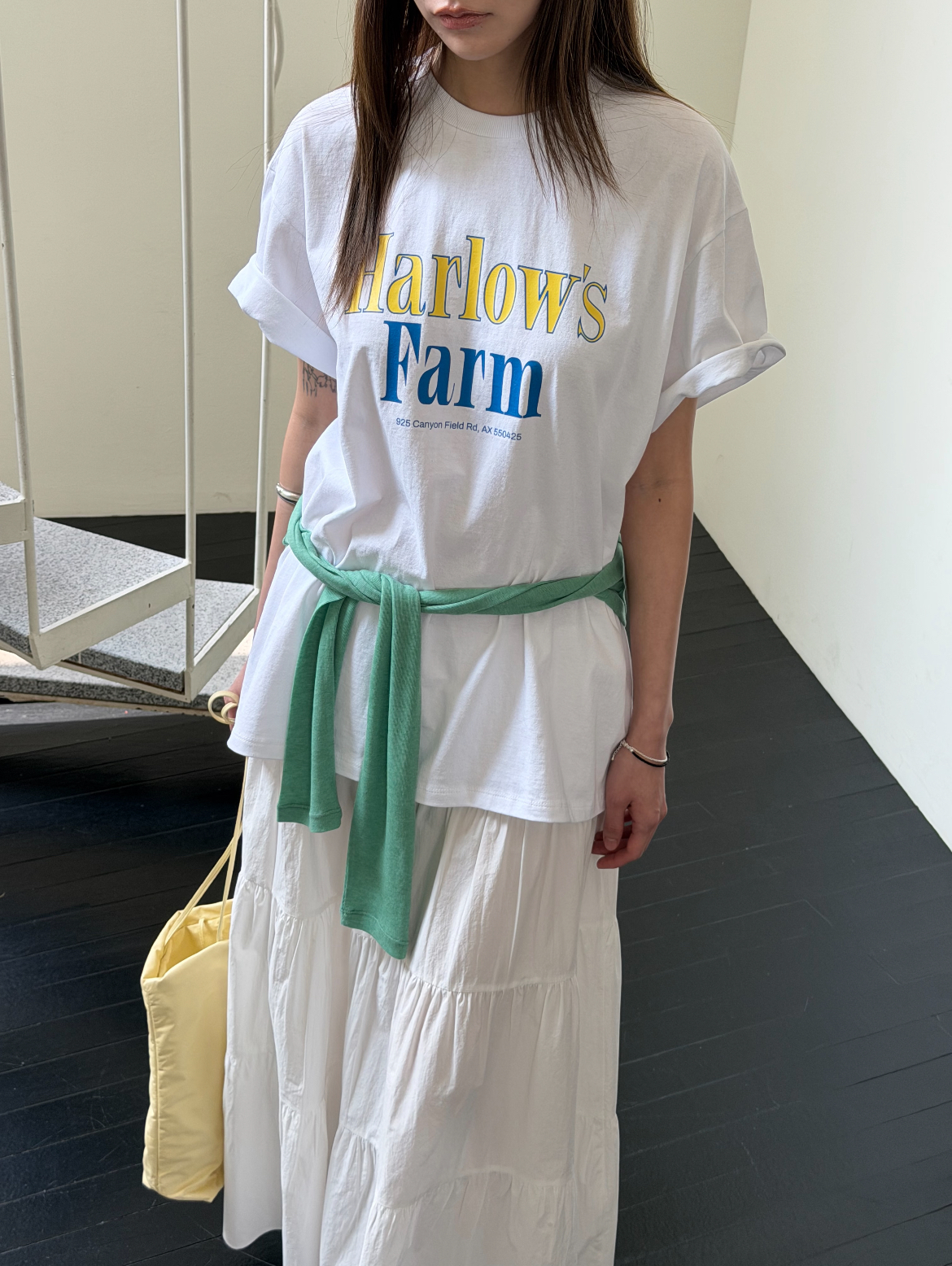 봄 새로운 레트로 디자인 센스 패치워크 색상 작은 대중 루즈핏 슬림해 보이는 기하학 프린트 반신 스커트 T 세트
