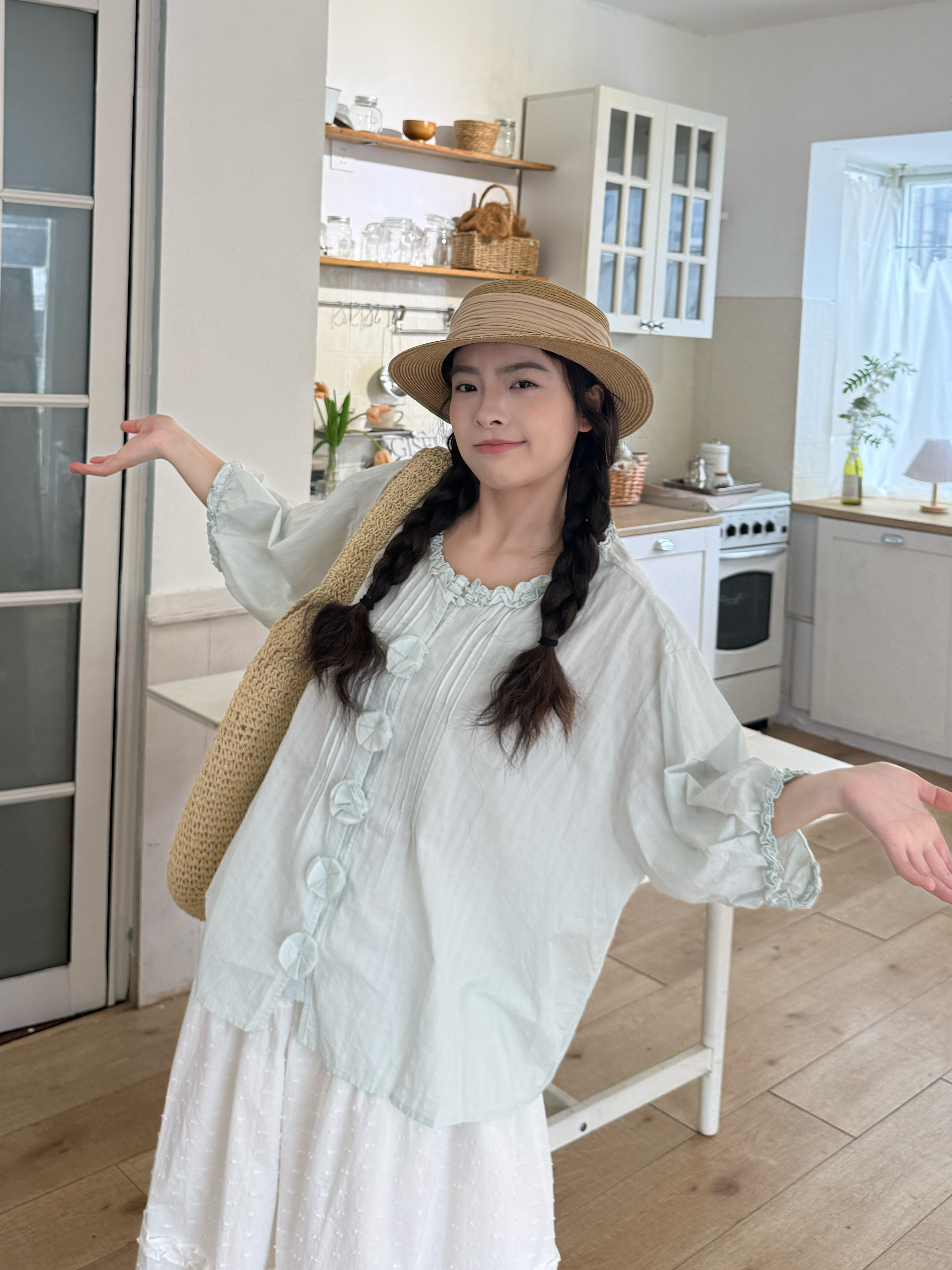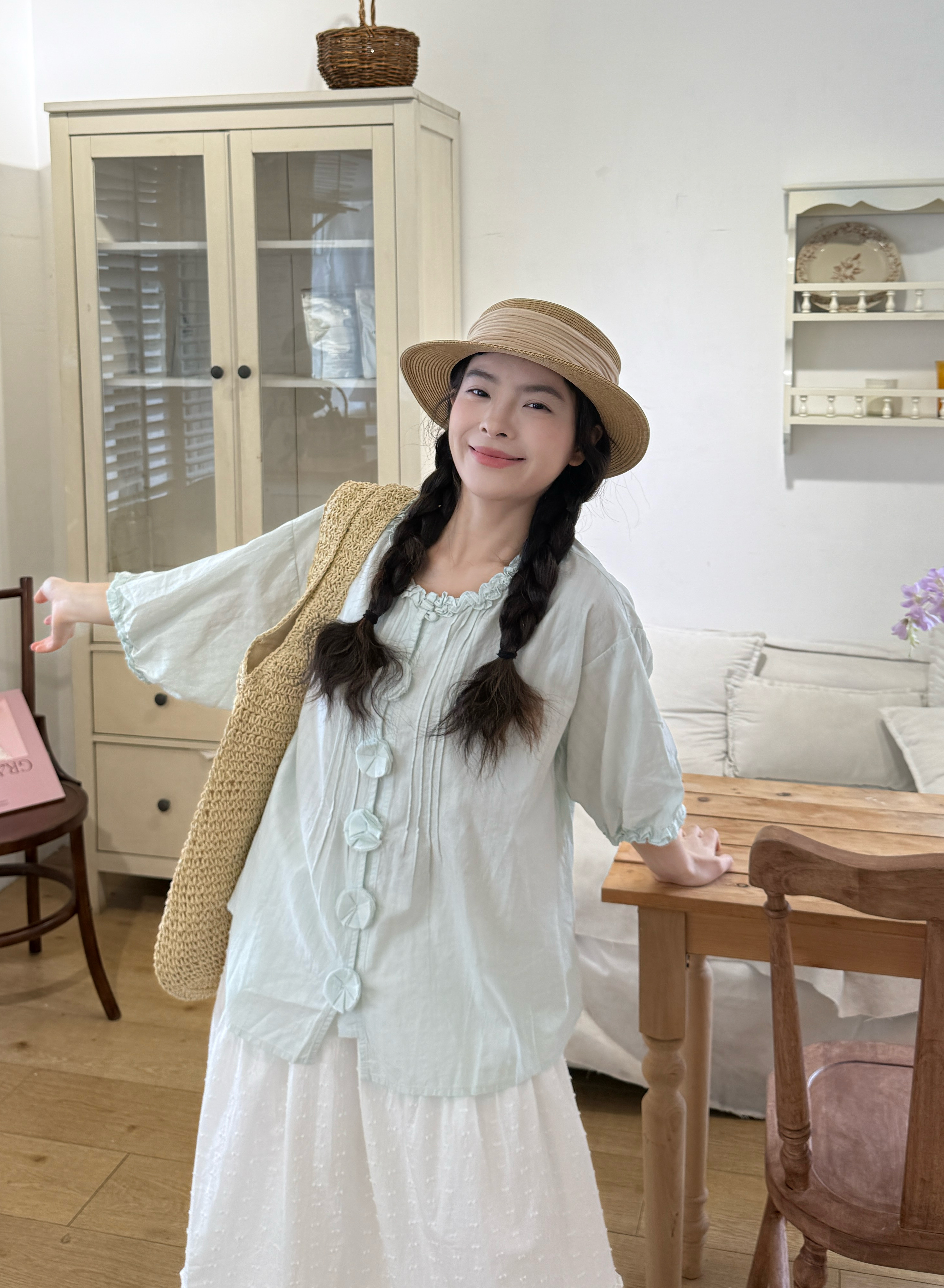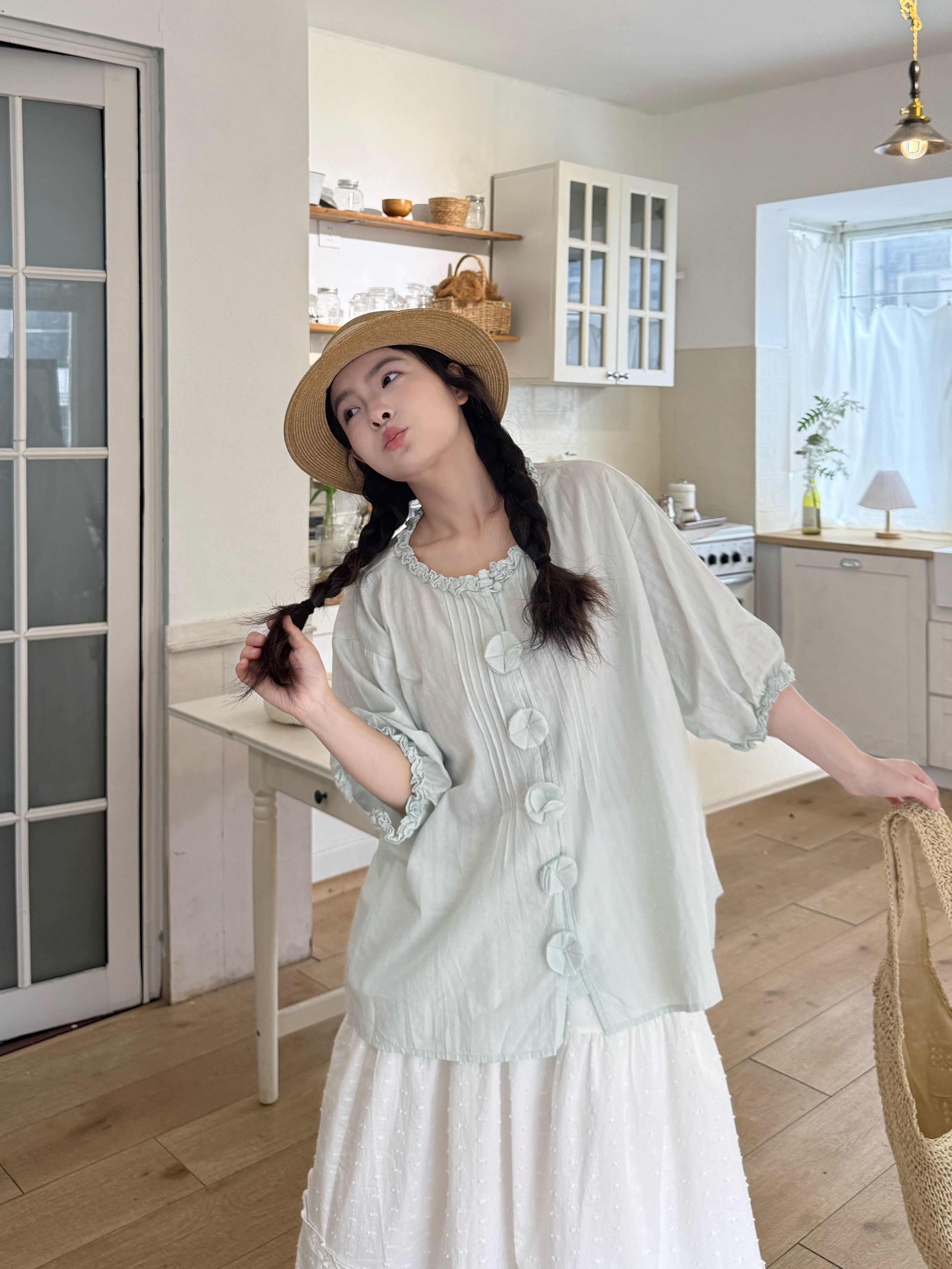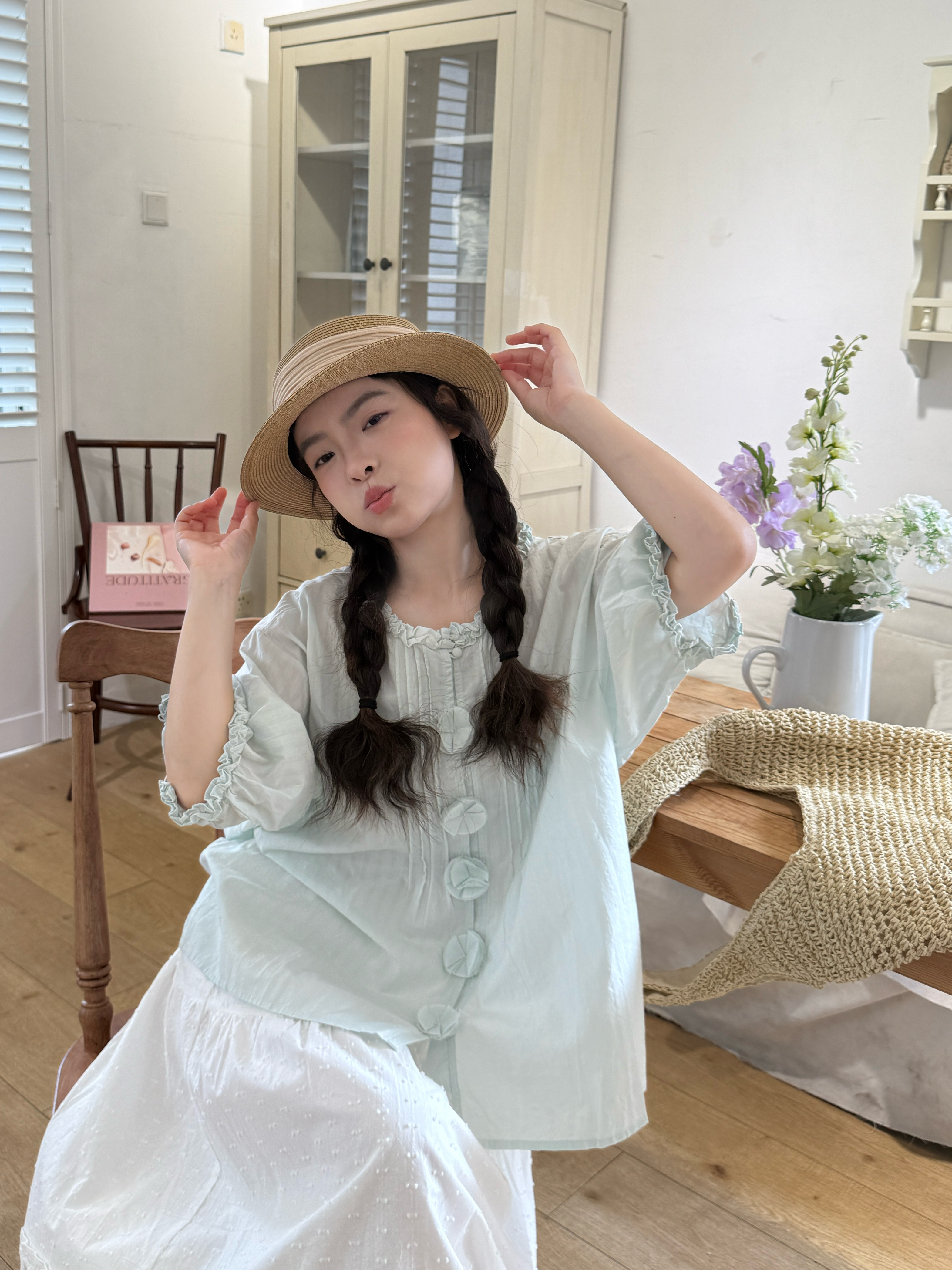 실사 레이스 베이비 칼라 루즈핏 반팔 셔츠