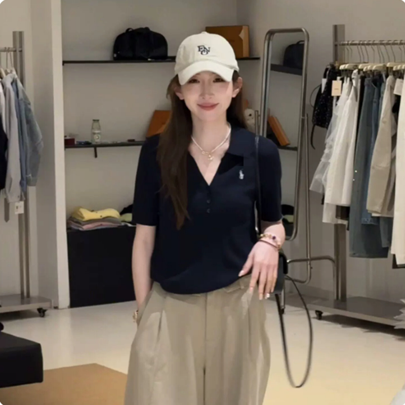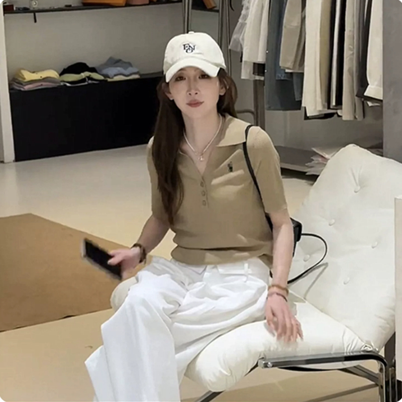 순수한 욕망 POLO 칼라 핫걸 디자인 센스 반팔 맨위 여성 의류 여름 새로운 고유 한 Chic 아름다운 니트 티셔츠