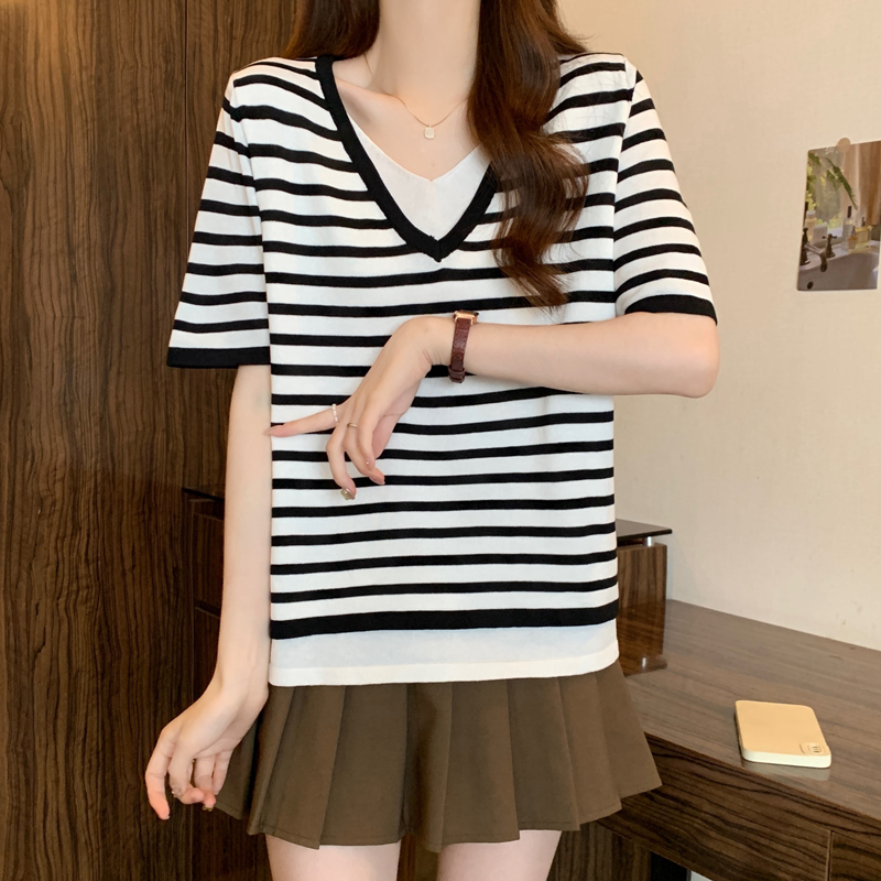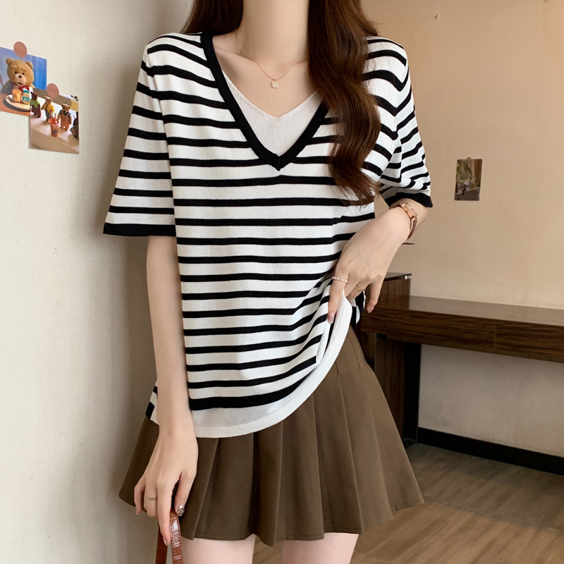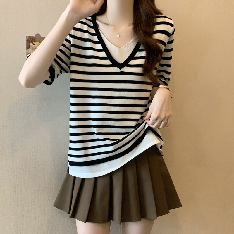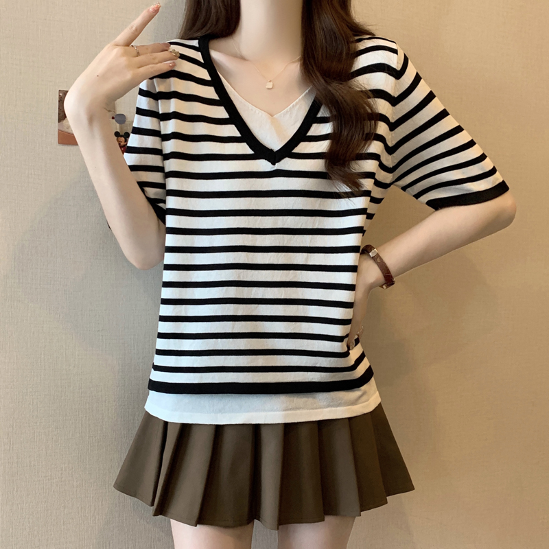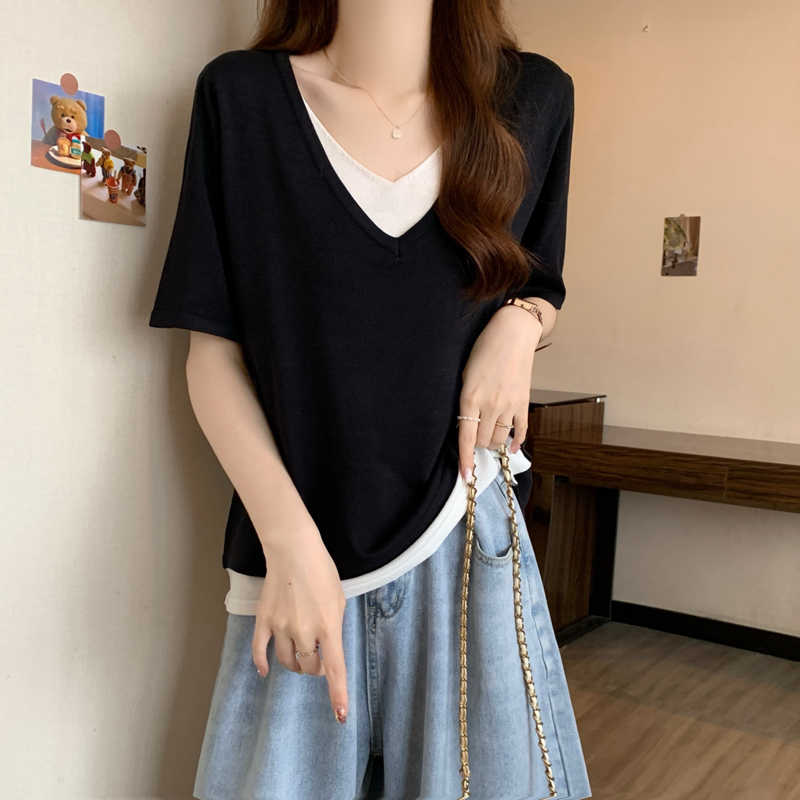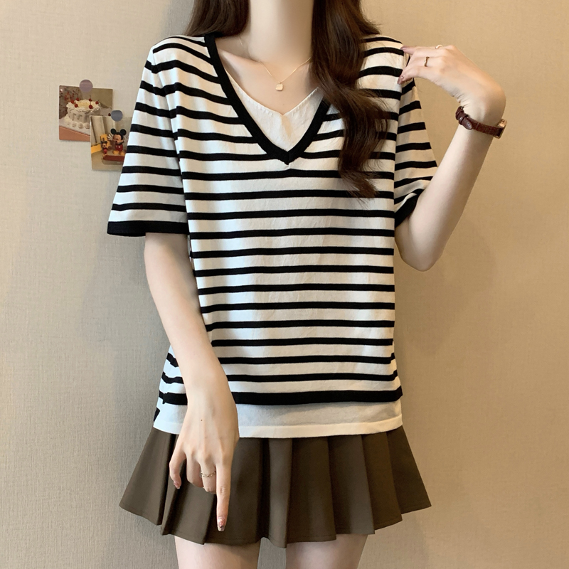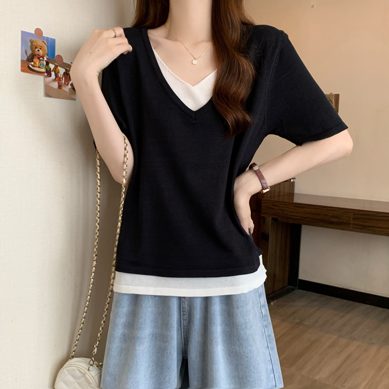 실사 2026 년 빅 사이즈 여성 의류 여름 새로운 페이크 레이어드 통통한 여동생 200 kg 니트 맨위 지방 mm 티셔츠