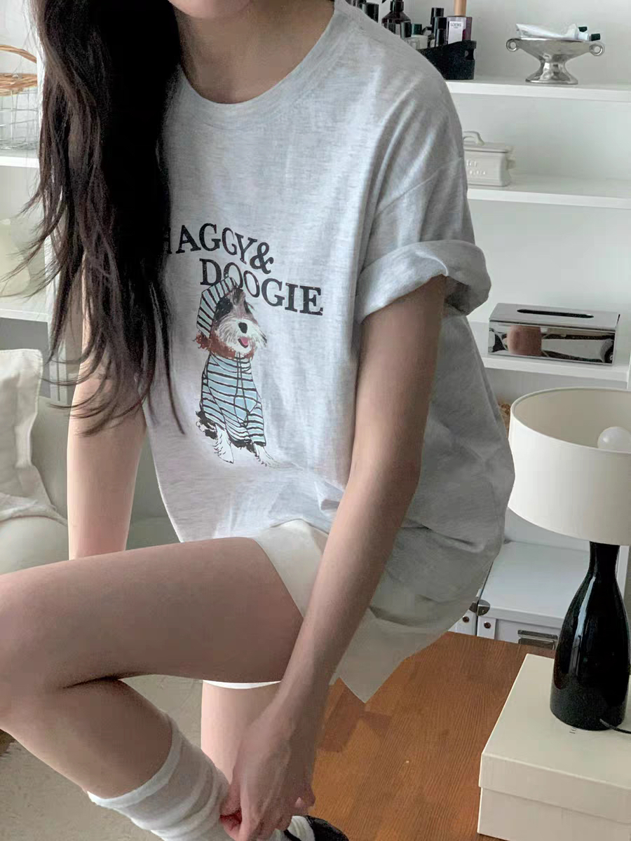 반팔 티셔츠 여성 2026 년 새로운 여름 한국 스타일 프린트 루즈핏 다용도 ins 인터넷 유명인 맨위