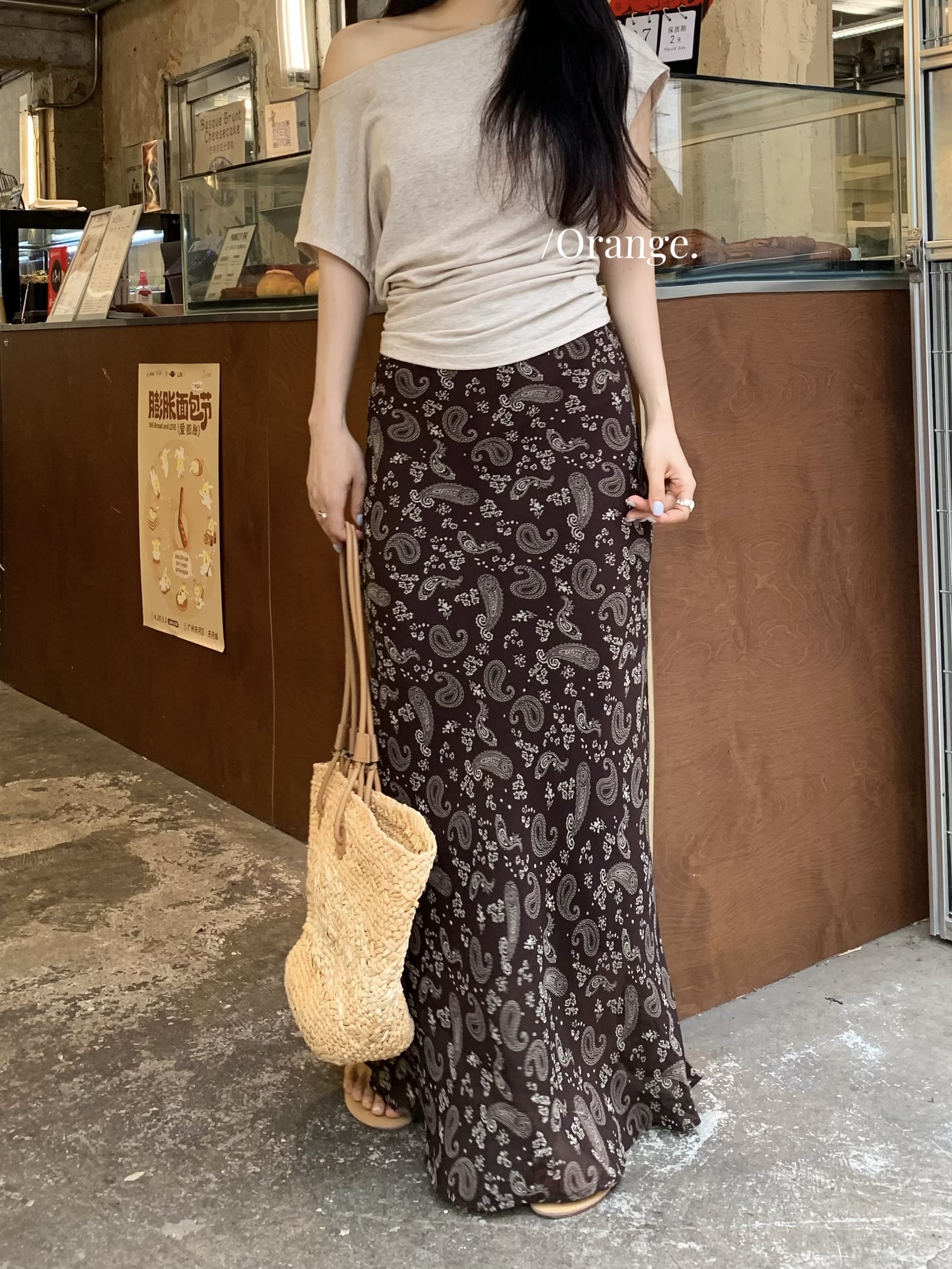 실사 정가 레트로 꽃무늬 보헤미안 꽃무늬 쉬폰 반신 스커트