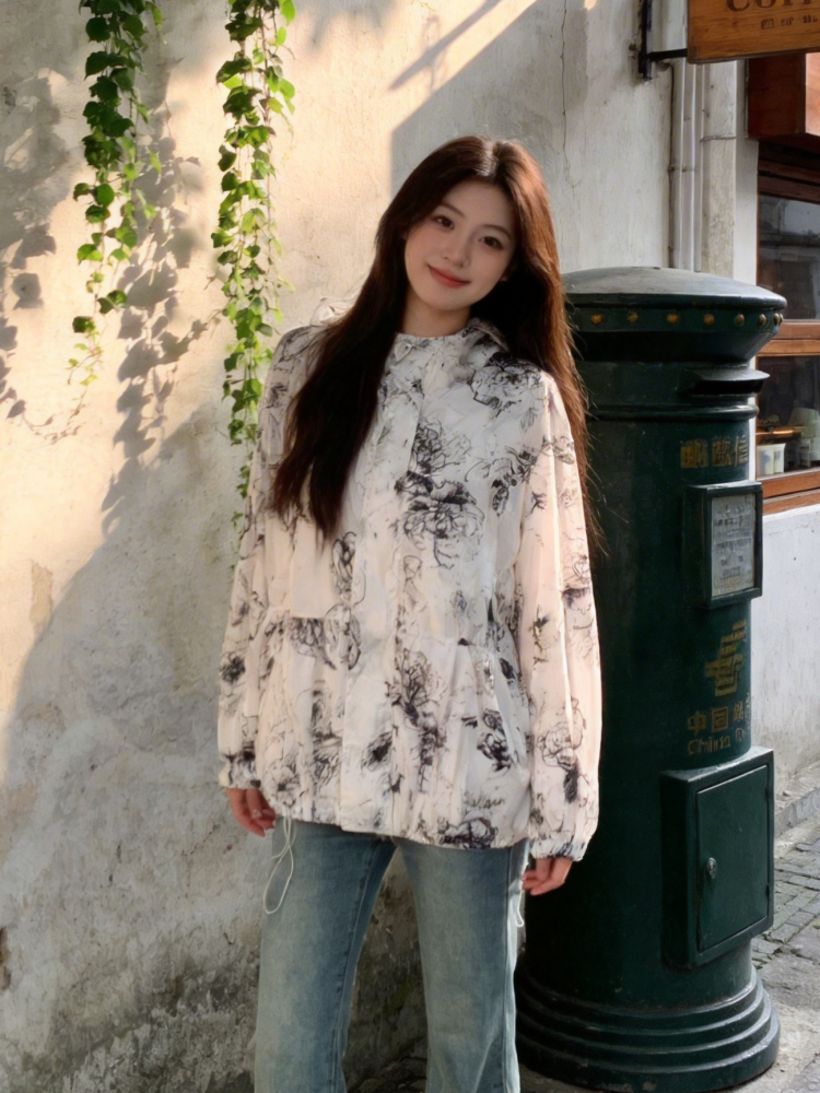 고급 디자인 센스 꽃 프린트 자외선 차단 재킷 2026 년 여름 새로운 작은 대중 패션 루즈핏 슬림해 보이는 맨위