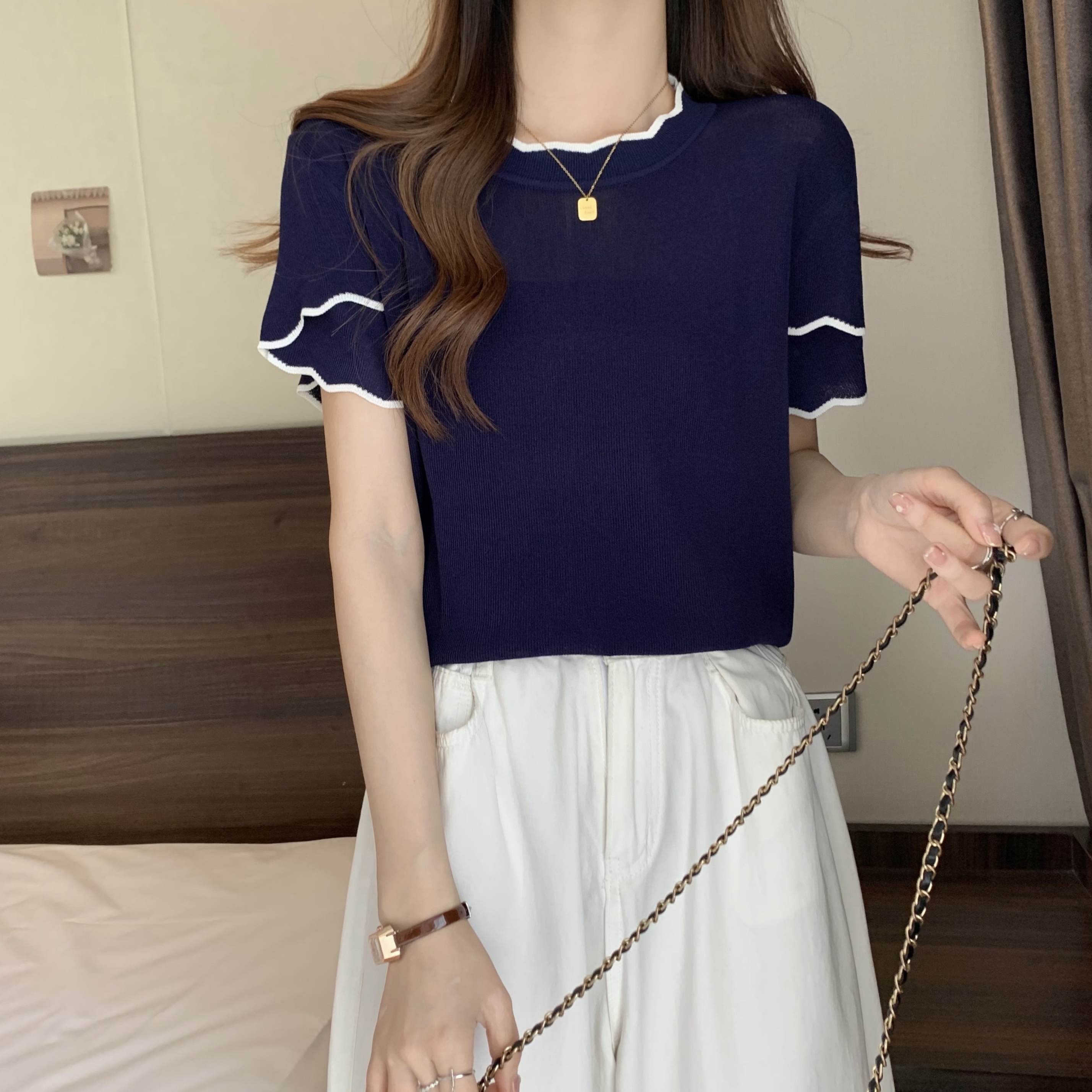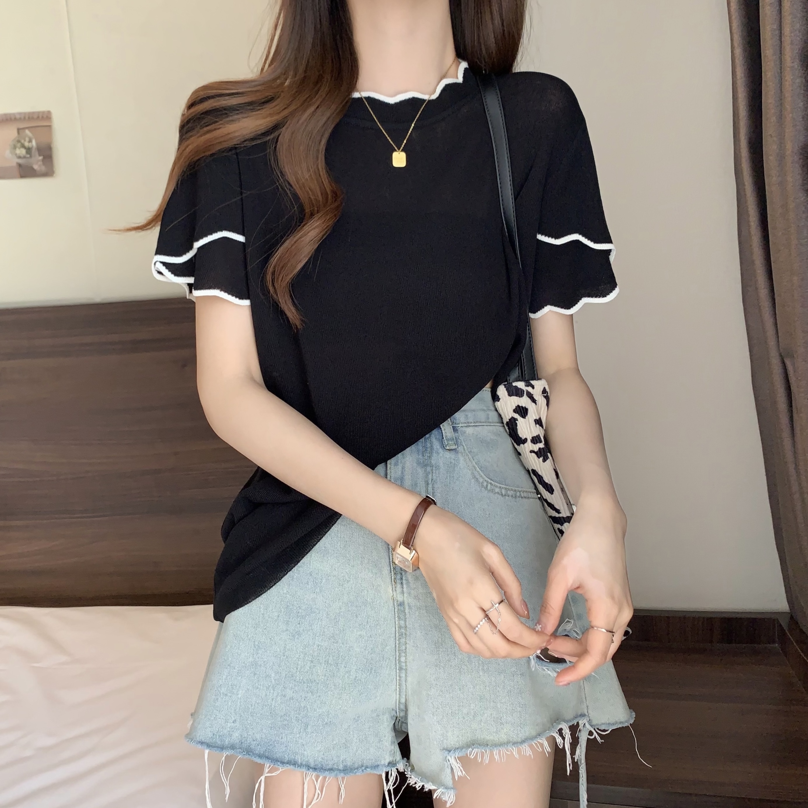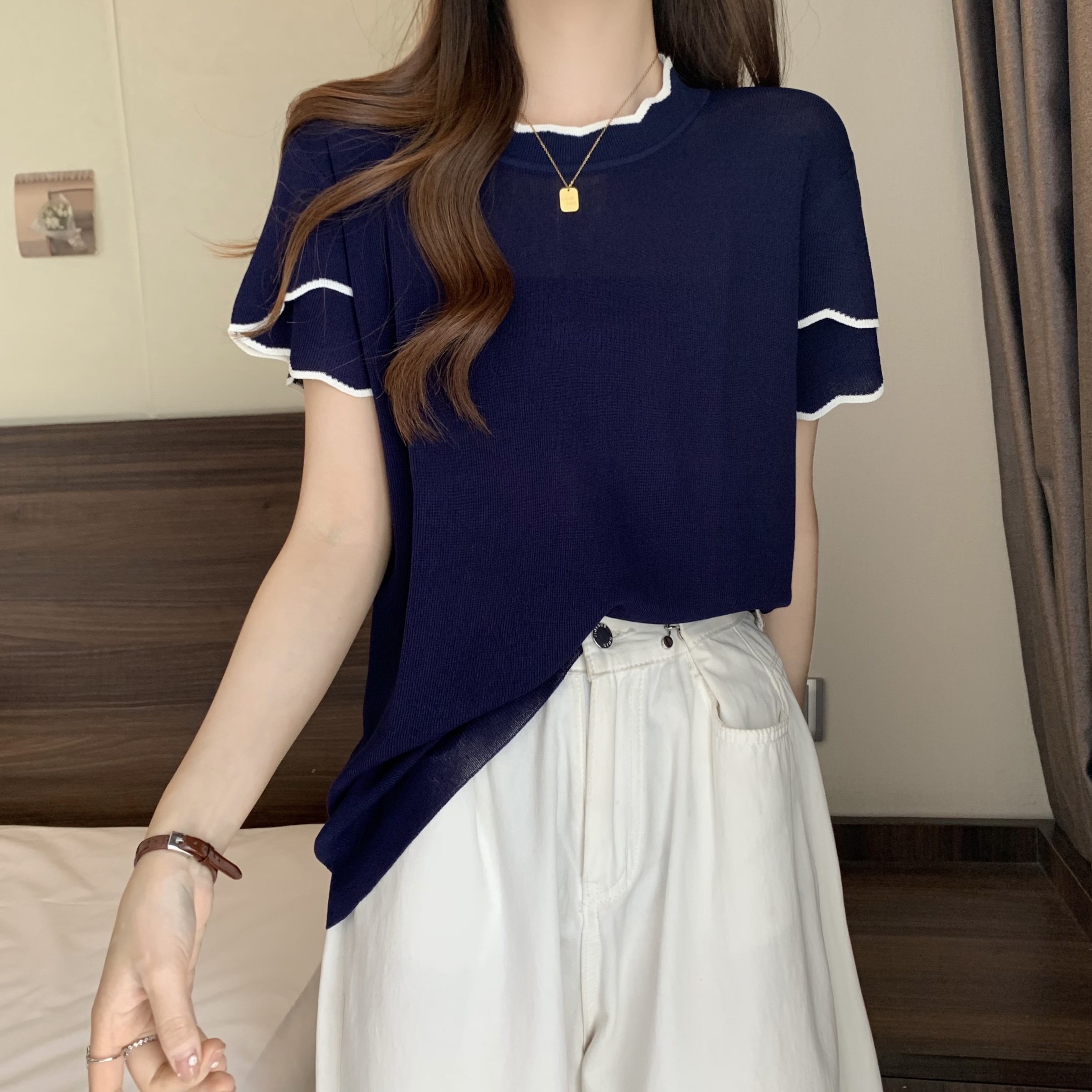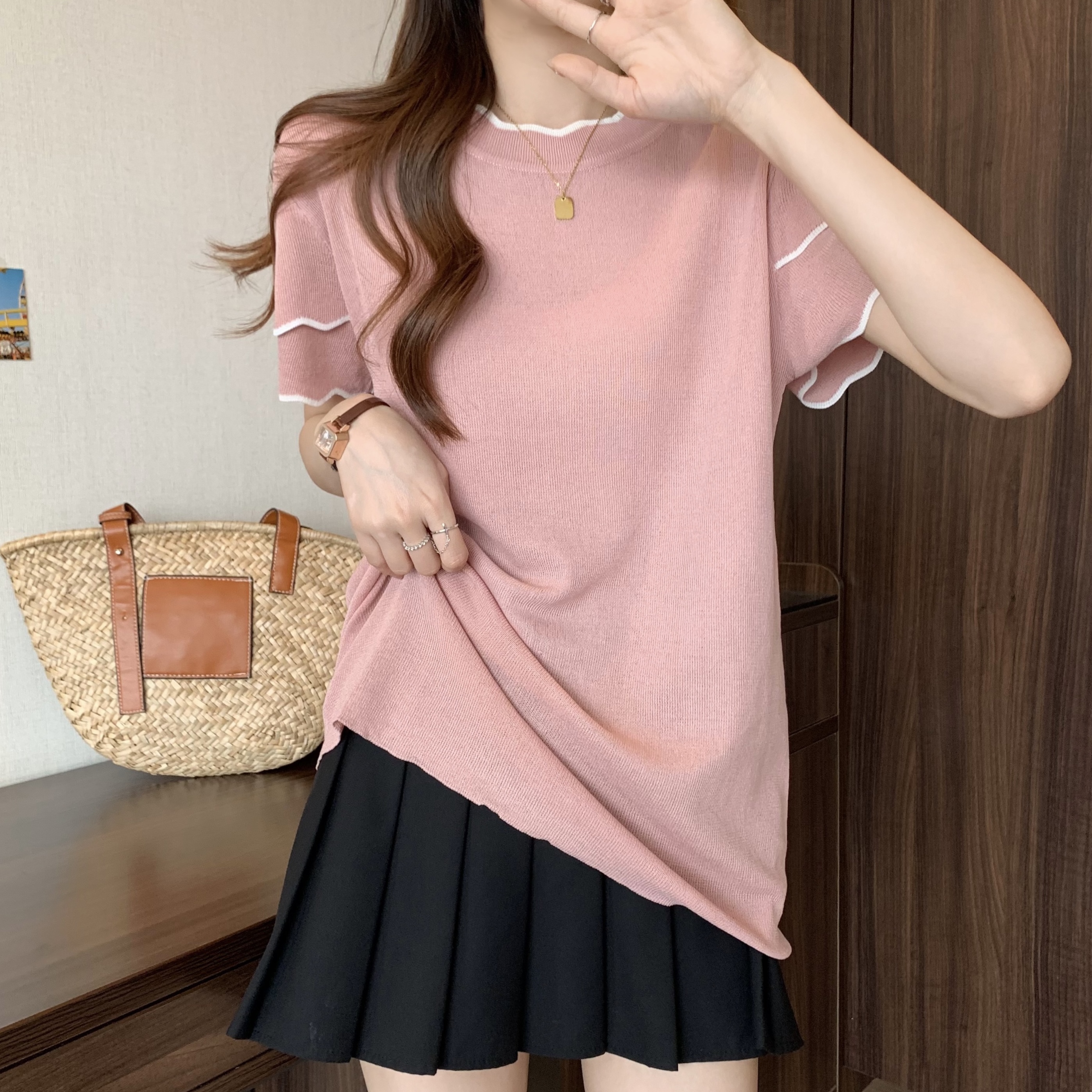 실사 2026 년 빅 사이즈 여성 의류 얼음 실크 니트 맨위 여성 여름 통통한 여동생 mm 디자인 센스 반팔 티셔츠