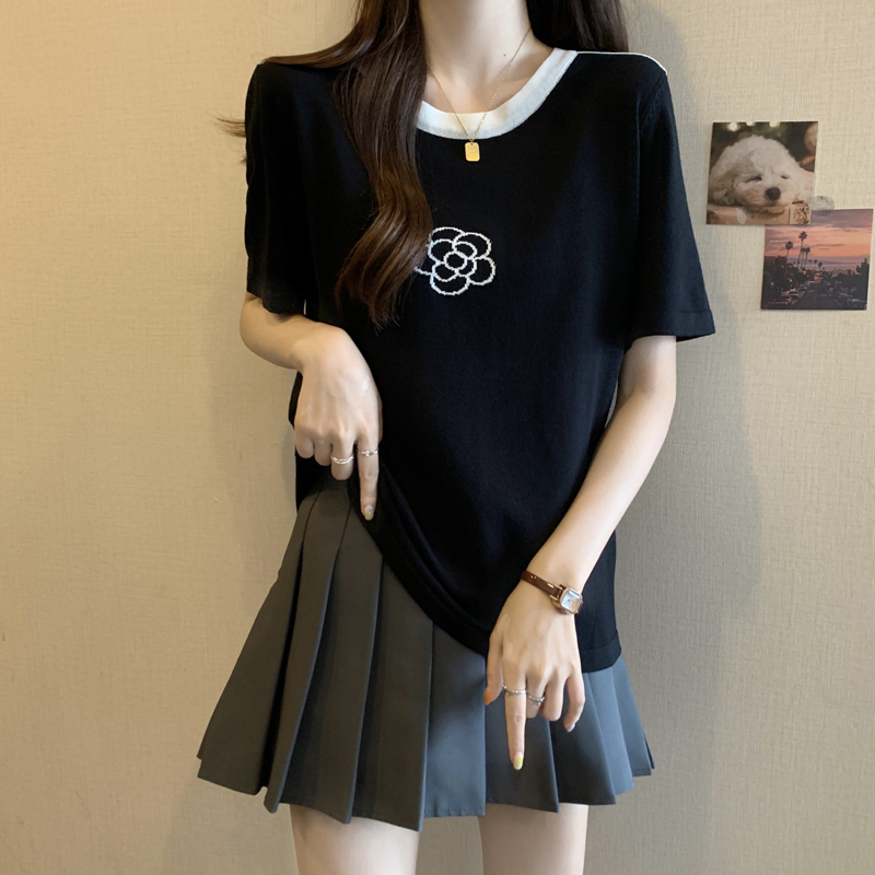 실사 2026 년 빅 사이즈 여성 의류 여름 새로운 지방 mm 반소매 라운드 넥 니트 맨위 통통한 여동생 티셔츠