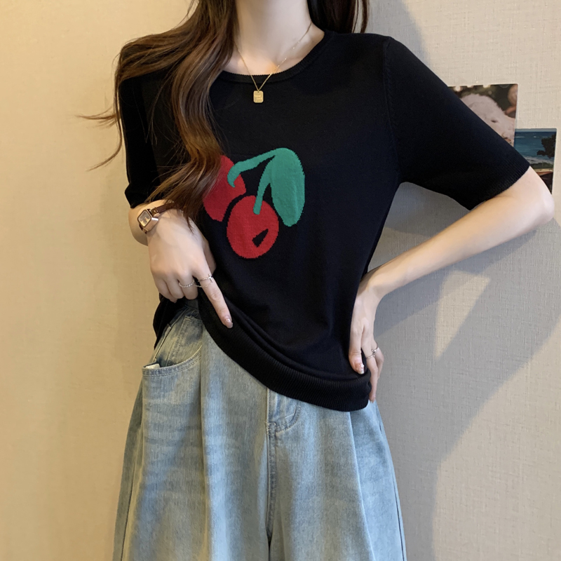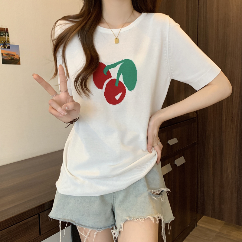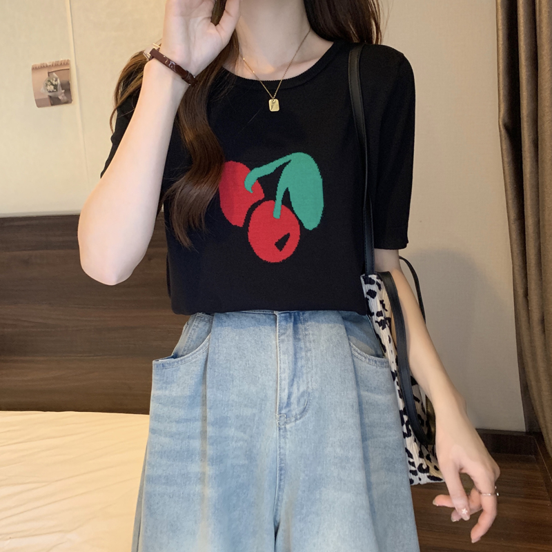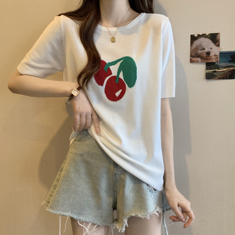 지방 mm 레트로 chic 외국 가스 라운드 넥 반팔 니트 스웨터 여성 여름 새로운 슈퍼 잘 생긴 홀로우 아웃 슬림해 보이는 맨위