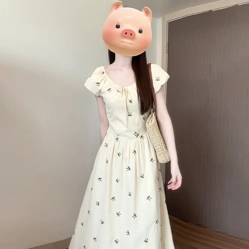 차 휴식 프랑스식 거품 소매 점프 슈트 치마 여성 의류 여름 2025 새로운 작은 키 허리 수축 품격 꽃무늬 롱 스커트