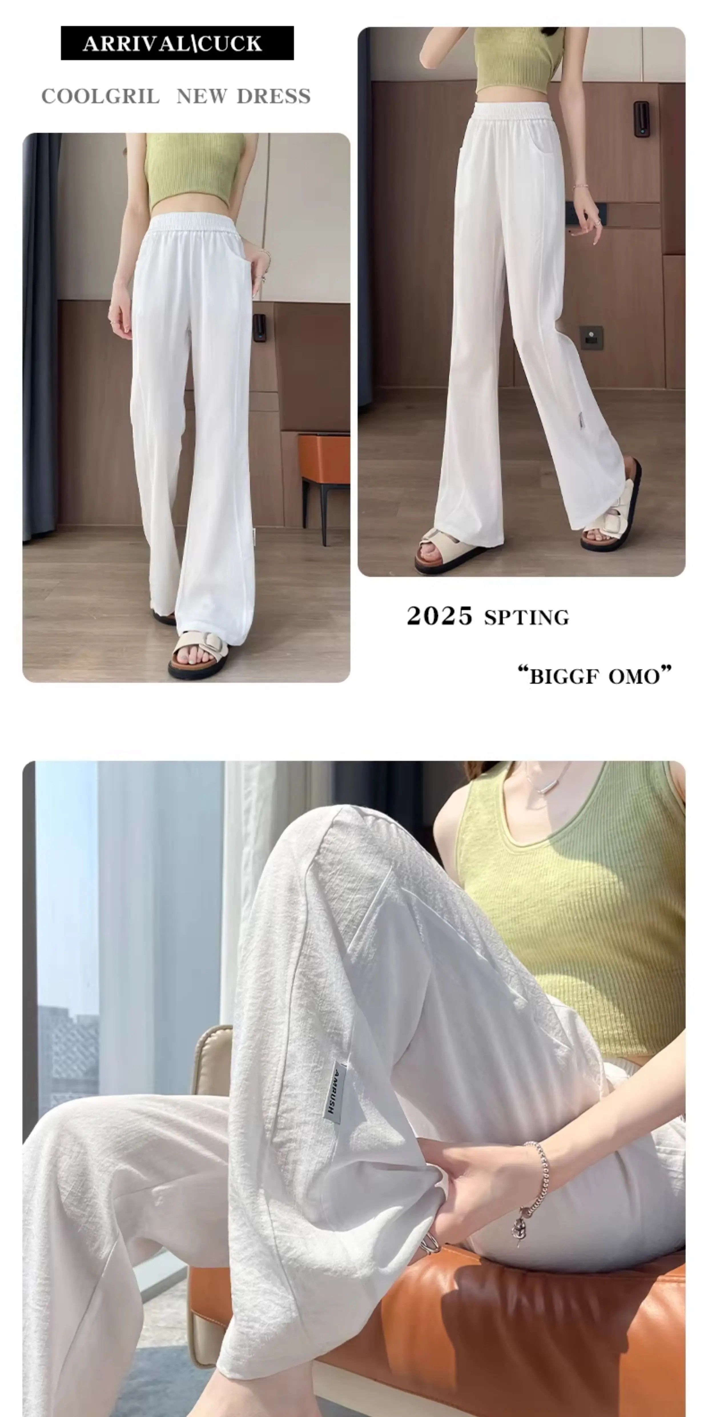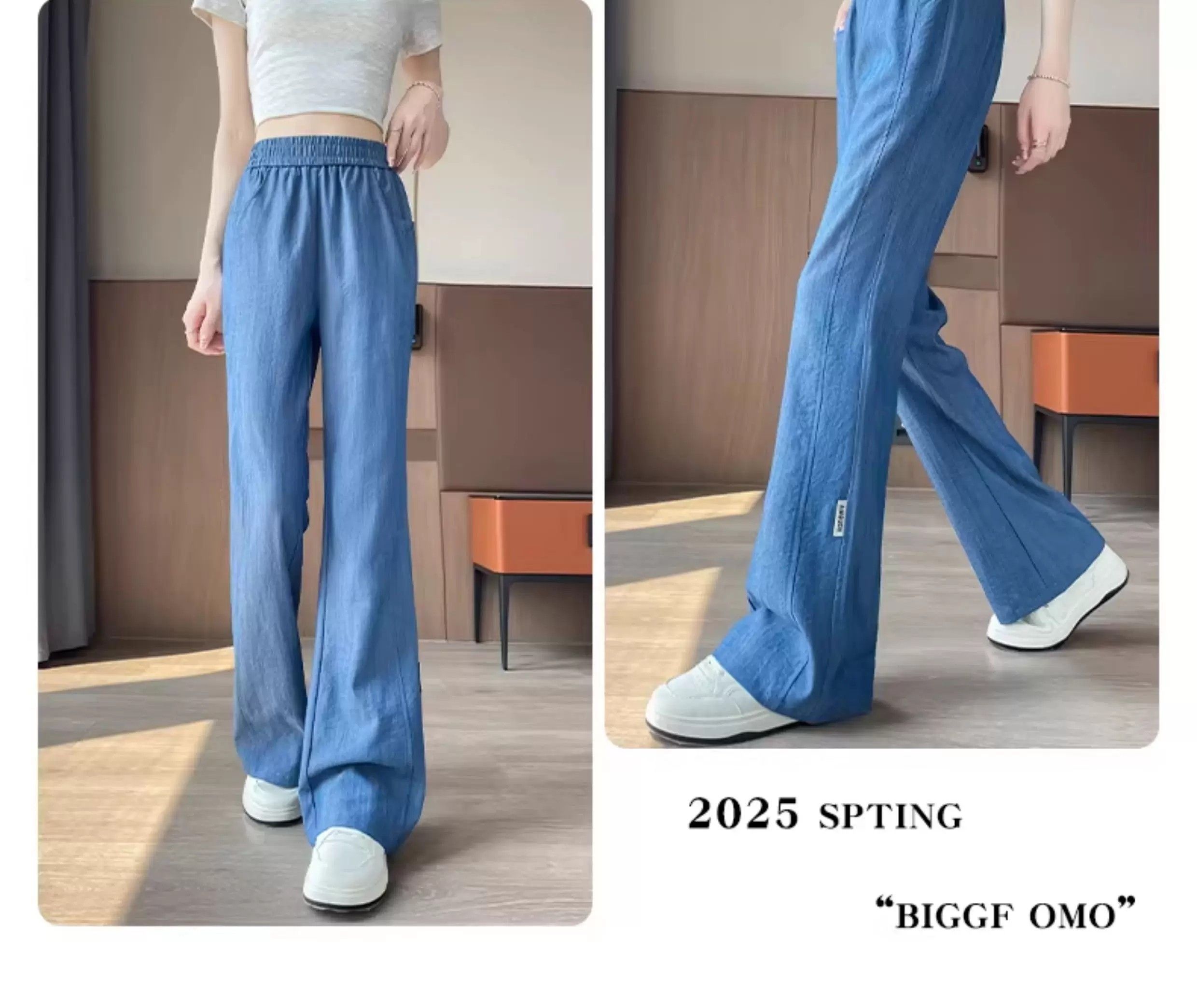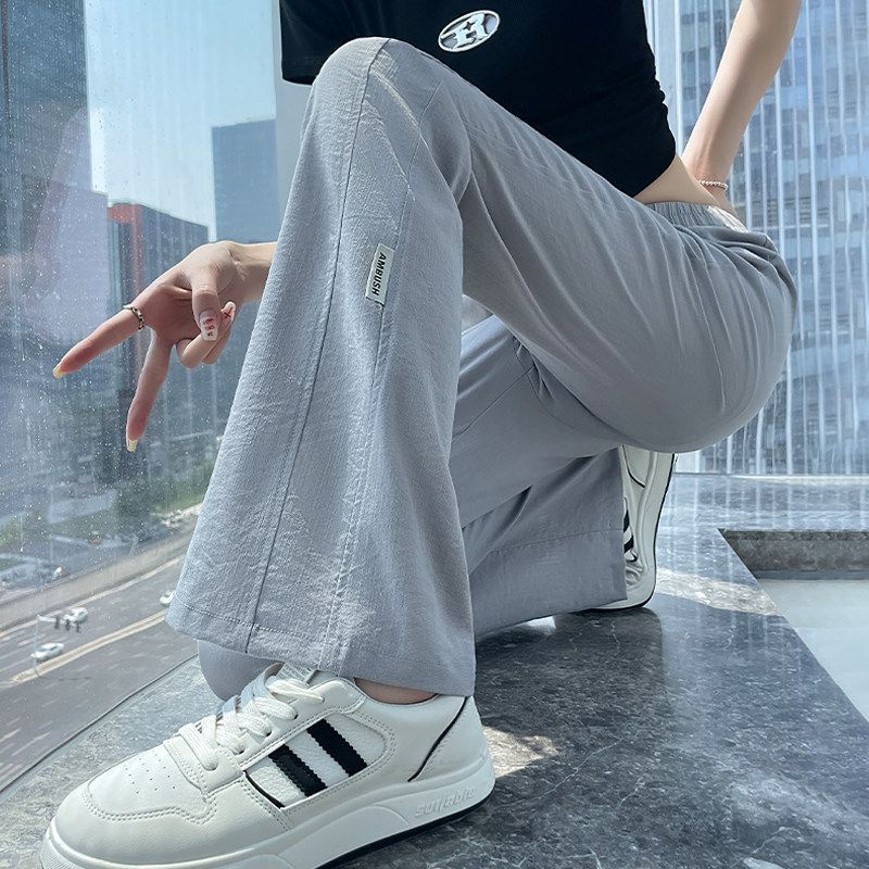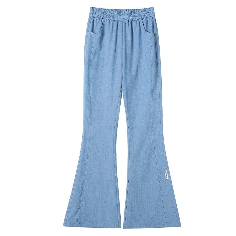 3 차원 허리 여름 면 린넨 플레어 바지 얇은 스타일 새로운 하이웨이스트 슬림해 보이는 캐주얼 여성 부츠컷 얼음 실크 바지