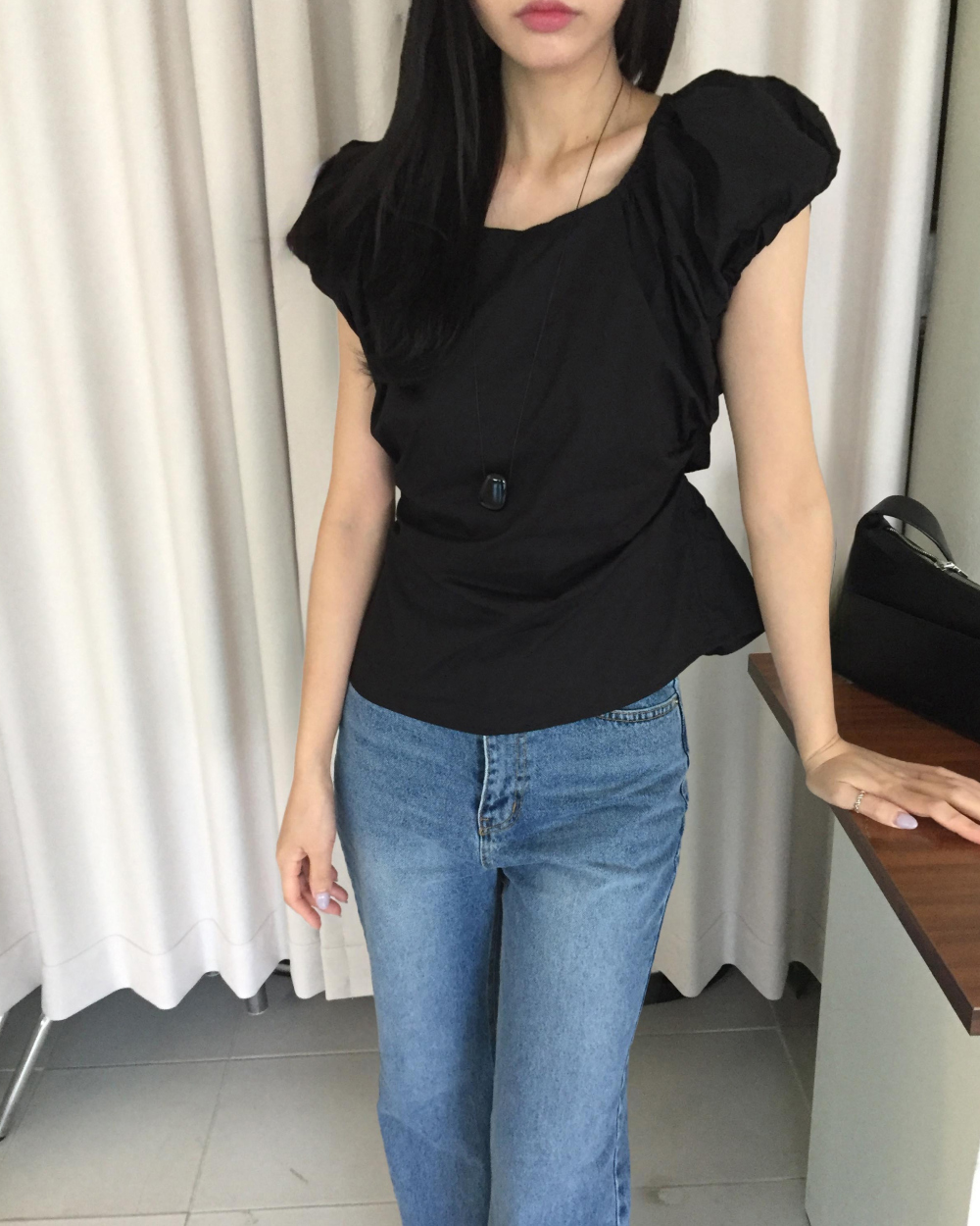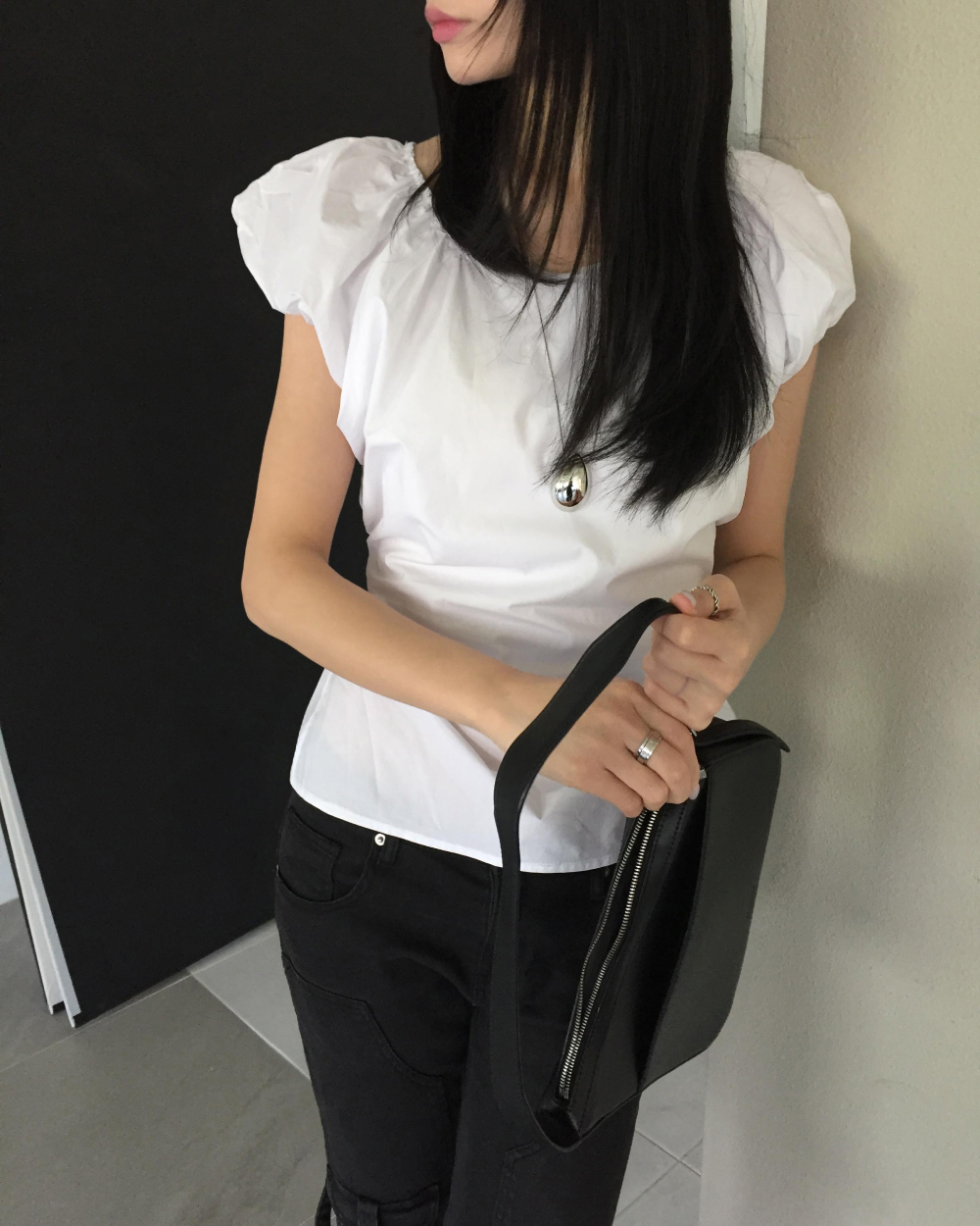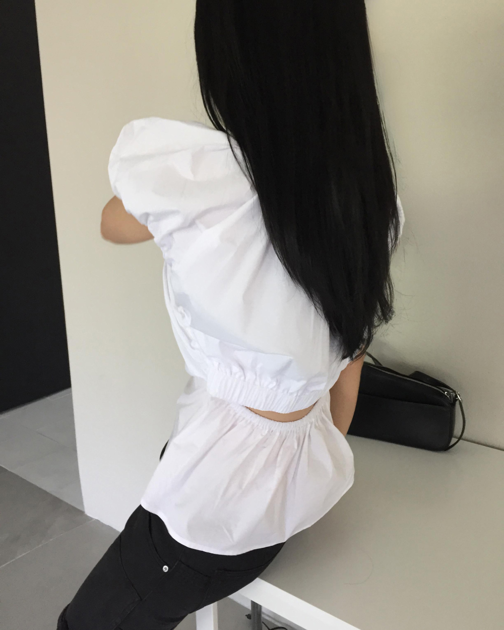 chic 한국 스타일 품격 거품 소매 작은 대중 셔츠
