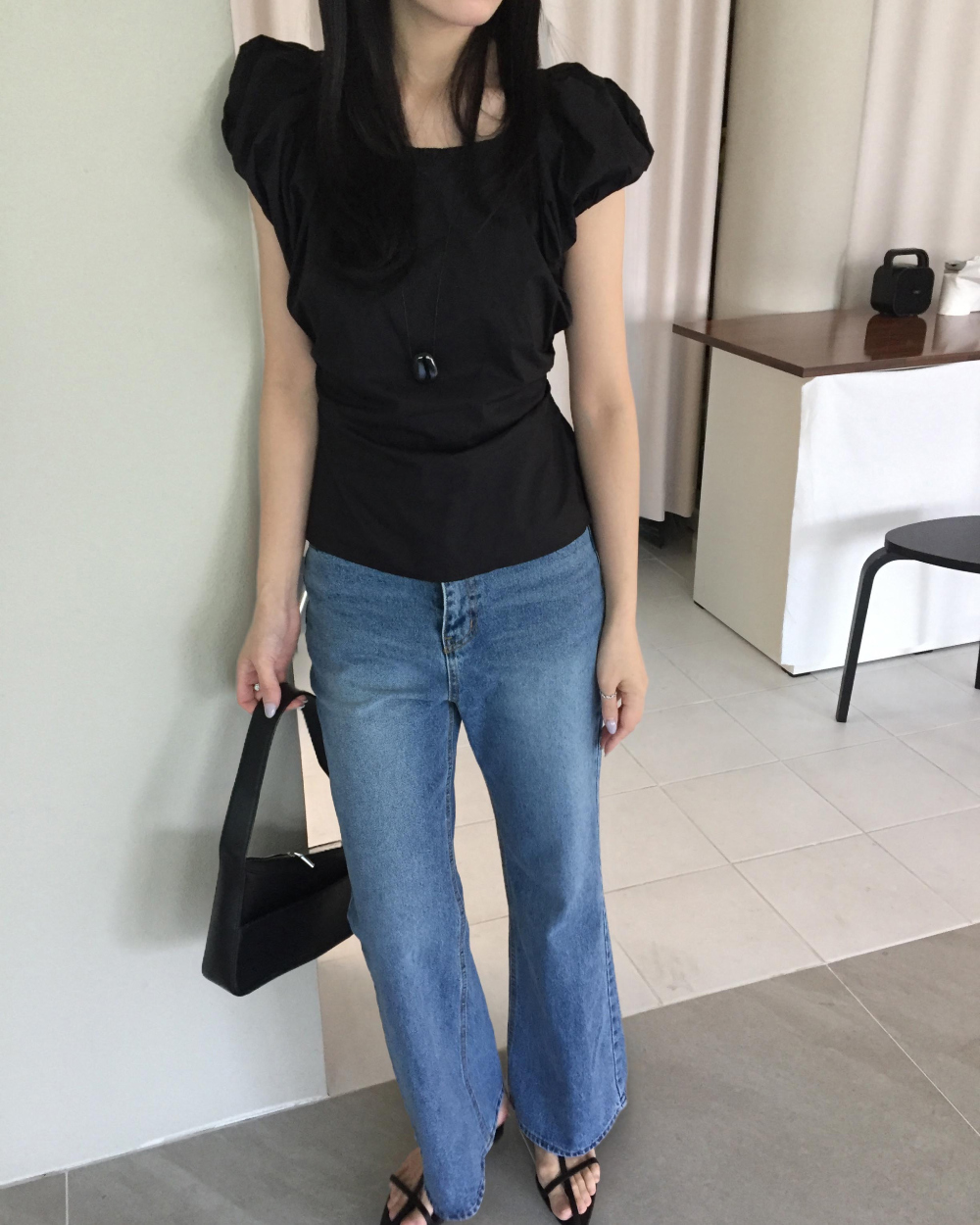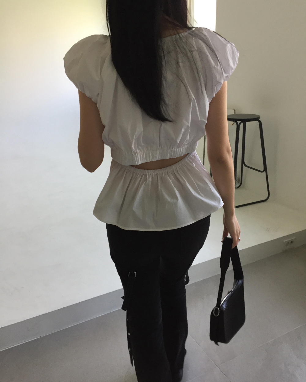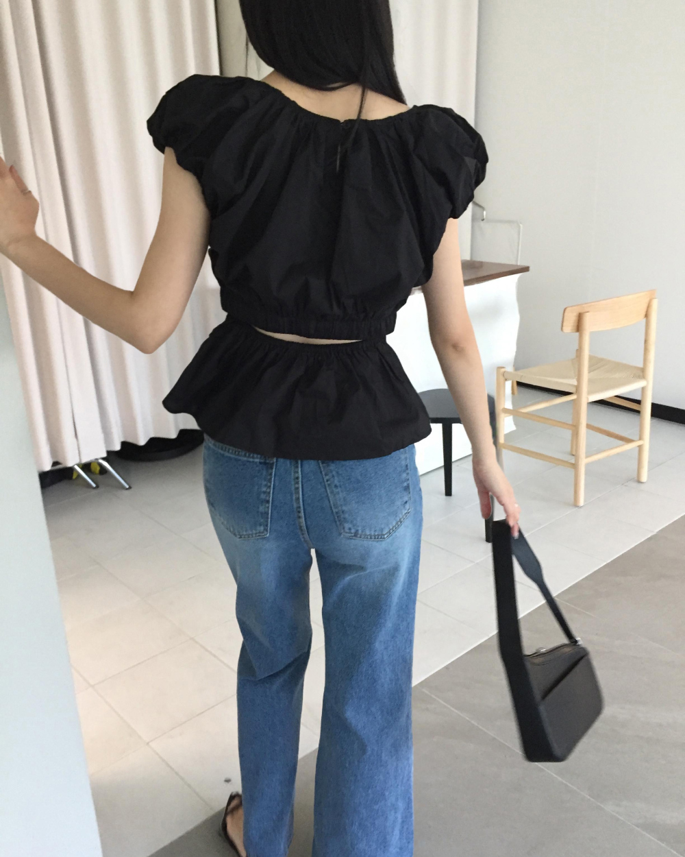 chic 한국 스타일 품격 거품 소매 작은 대중 셔츠
