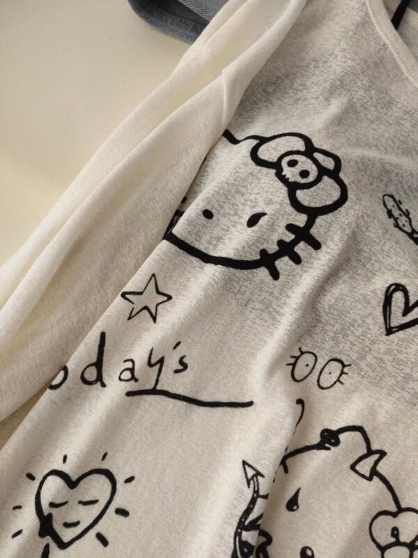 대나무 마디 리브 만화 kt 고양이 자외선 차단 블라우스 긴팔 여성 루즈핏 한 부서 달콤함 맨위