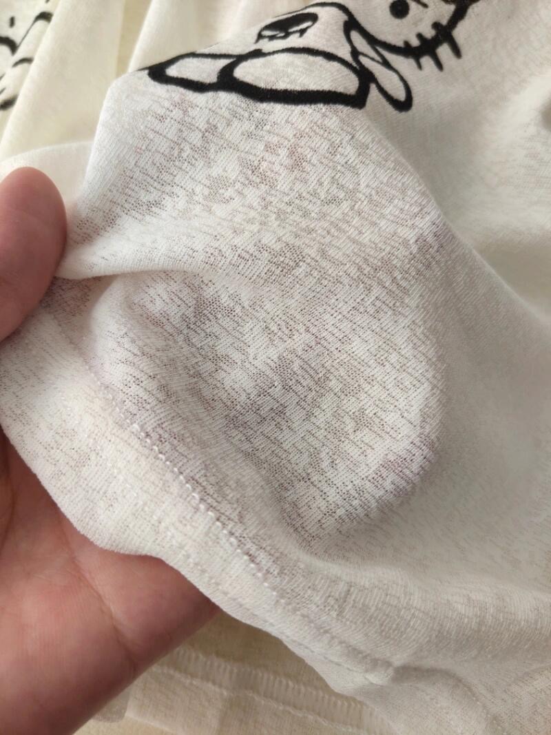 순면 아메리칸 핫걸 비스듬한 어깨 반팔 티셔츠 여성 강아지 프린트 루즈핏 캐주얼 오프숄더 맨위 여름