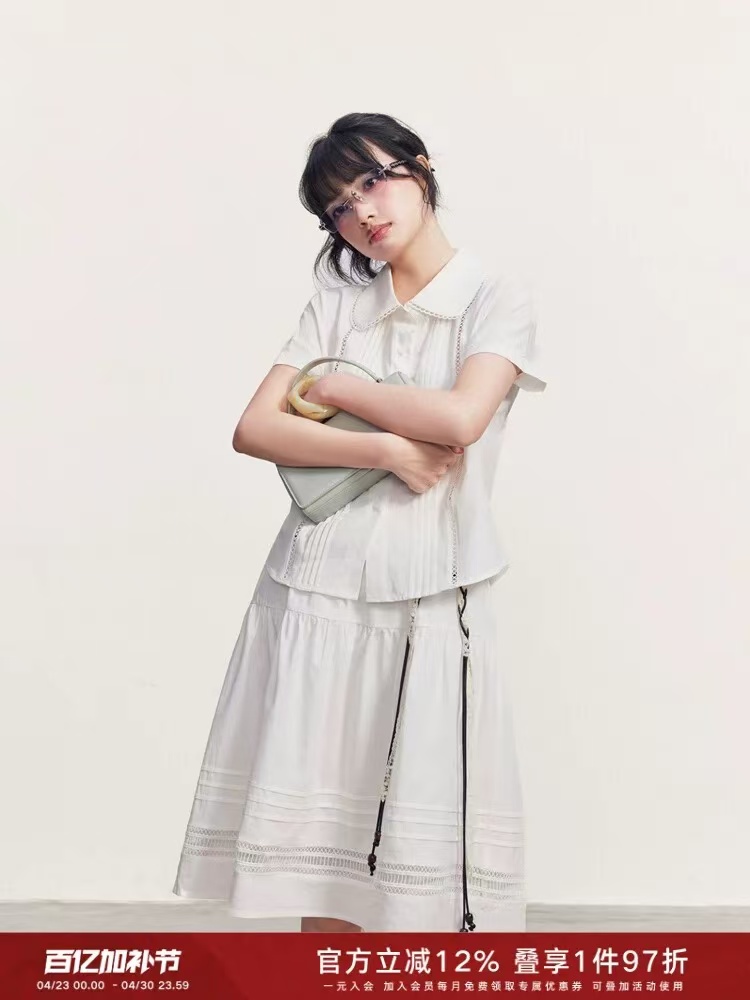 슈퍼 화재 여름 착용 가져 가라. 에이즈 환자 세트 여성 베이비 칼라 화이트 반팔 셔츠 하이웨이스트 반신 스커트 투피스 세트