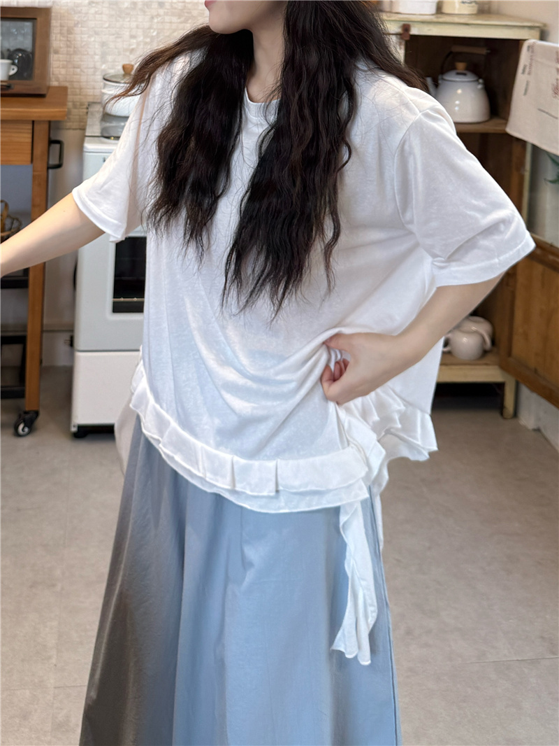 잉 어린이 맞춤 꽃 도시 비밀 상황 느긋한 바람 루즈핏 배색 반팔 티셔츠 캐주얼 바람 한 마디 하이웨이스트 미니 스커트