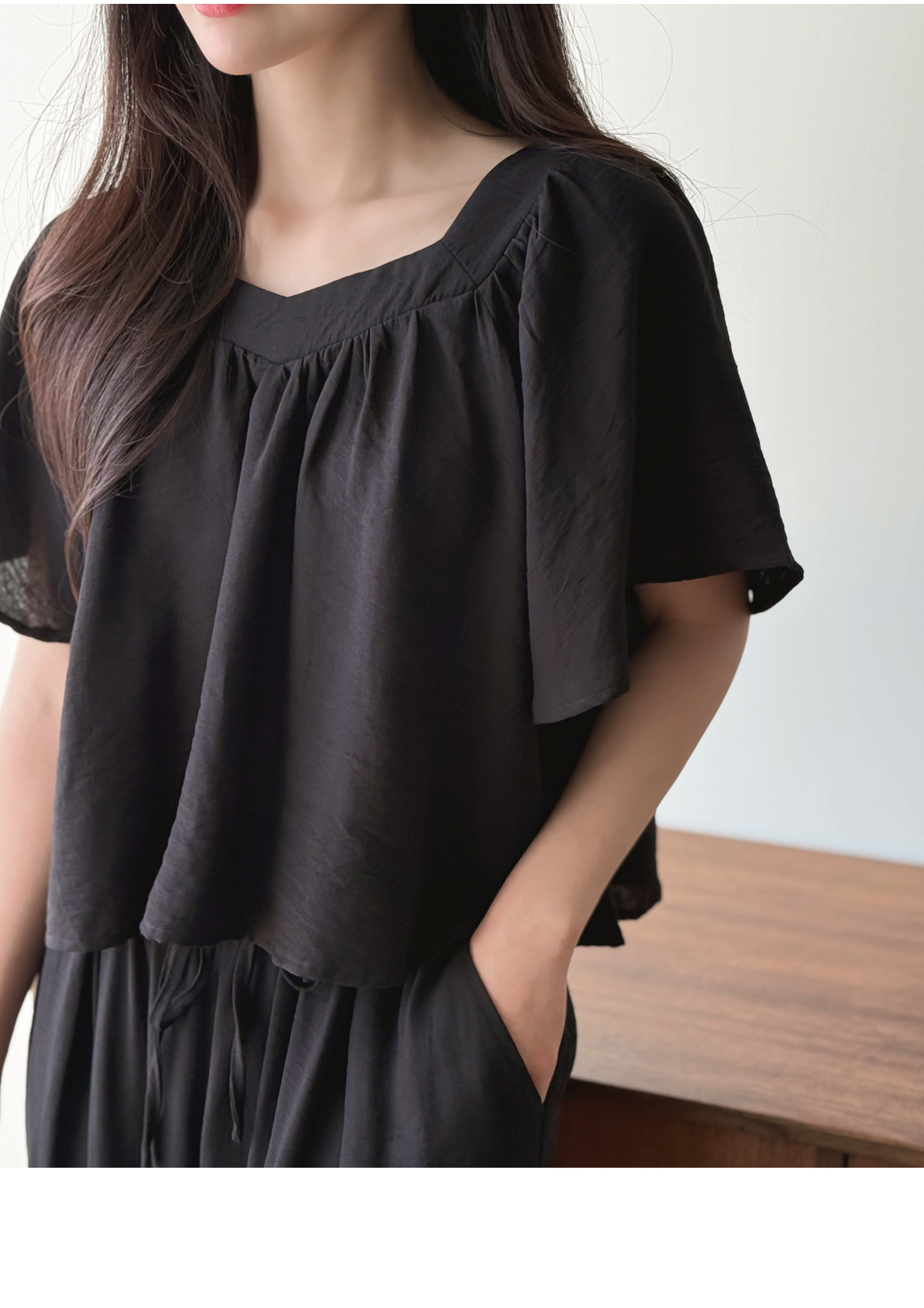 2026 패션 라운드 넥 반팔 니트 스웨터 허리밴드 슬림해 보이는 스트레이트 팬츠 세트