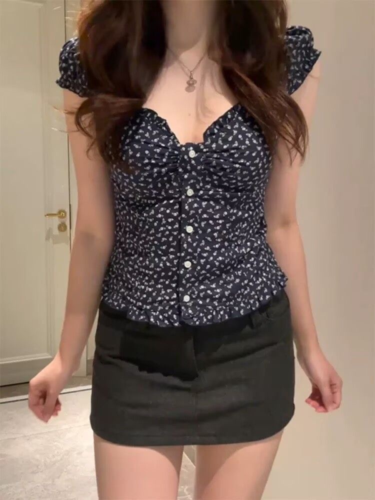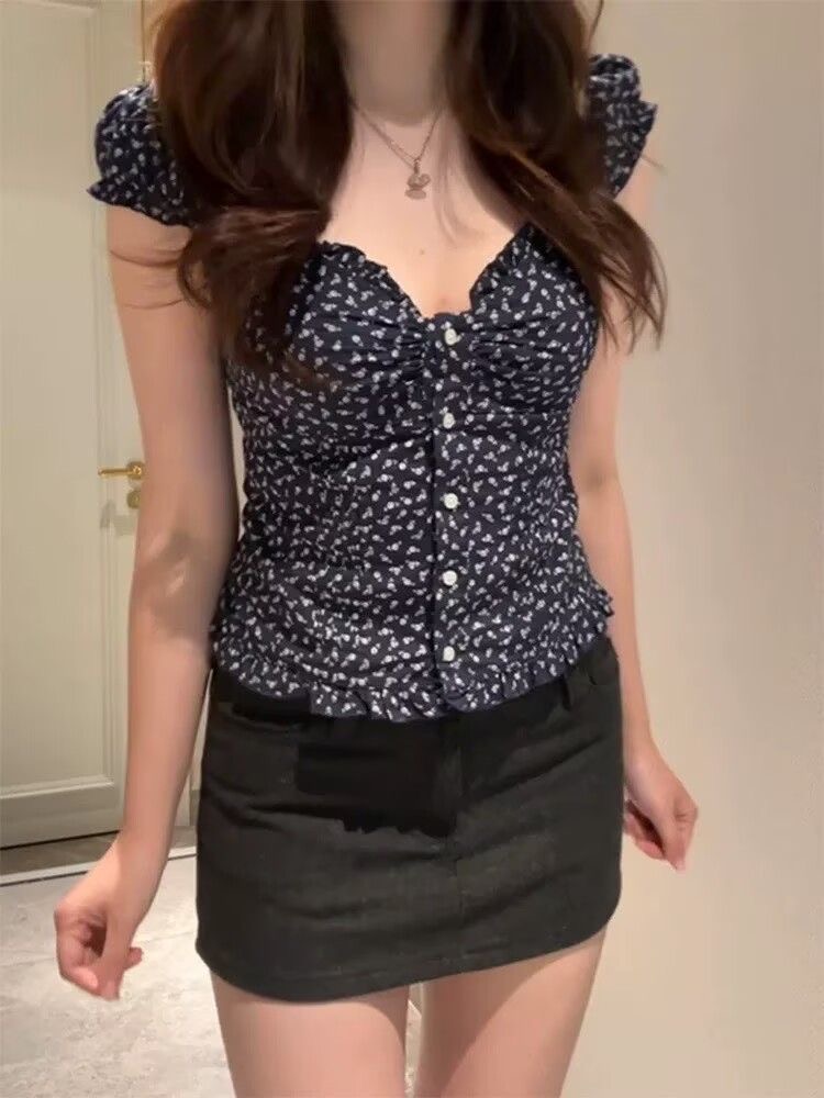 꽃무늬 bm 버블 반팔 티셔츠 여성 셔츠 2026 여름 새로운 슬림해 보이는 핫걸 다용도 쇼트 스타일 맨위 오픈 가디건