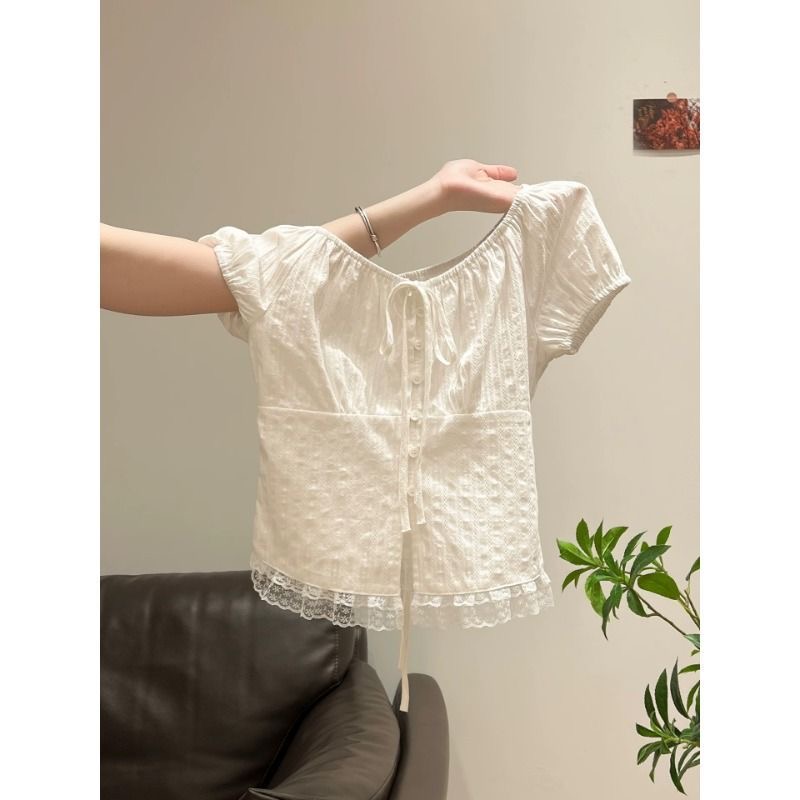 달콤함 소녀 센스 레이스 레이스 스트랩 반팔 여성 셔츠 2026 여름 외국 가스 작은 셔츠 슬림해 보이는 Chic 맨위