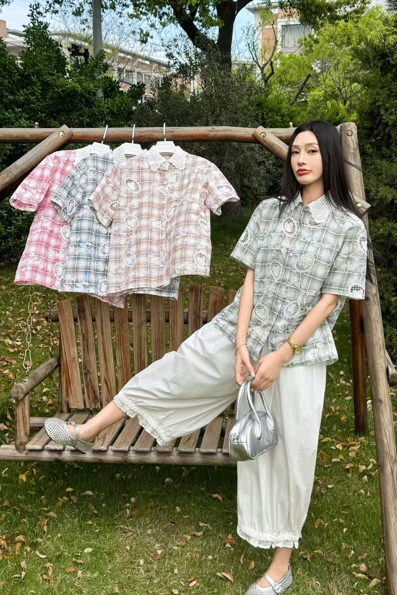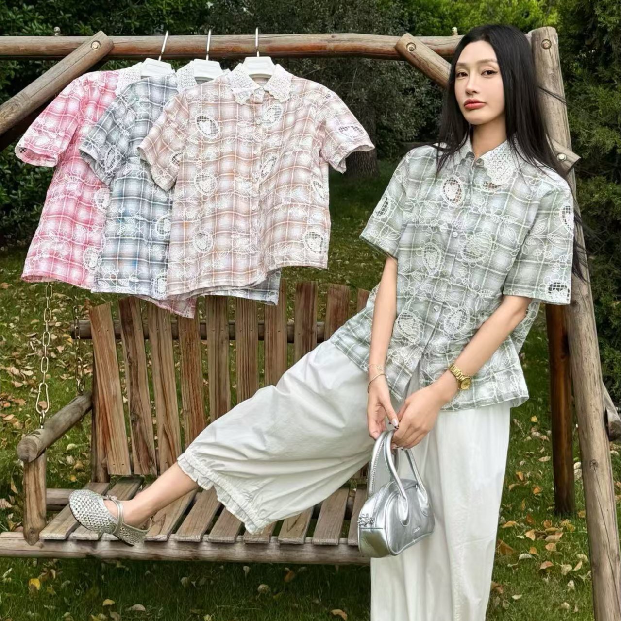 유럽 상품 높음 세트 섹션 홀로우 아웃 훅 제직 꽃 살구 색상 니트 블라우스 여성 여름 새로운 작은 대중 디자인 품격 맨위
