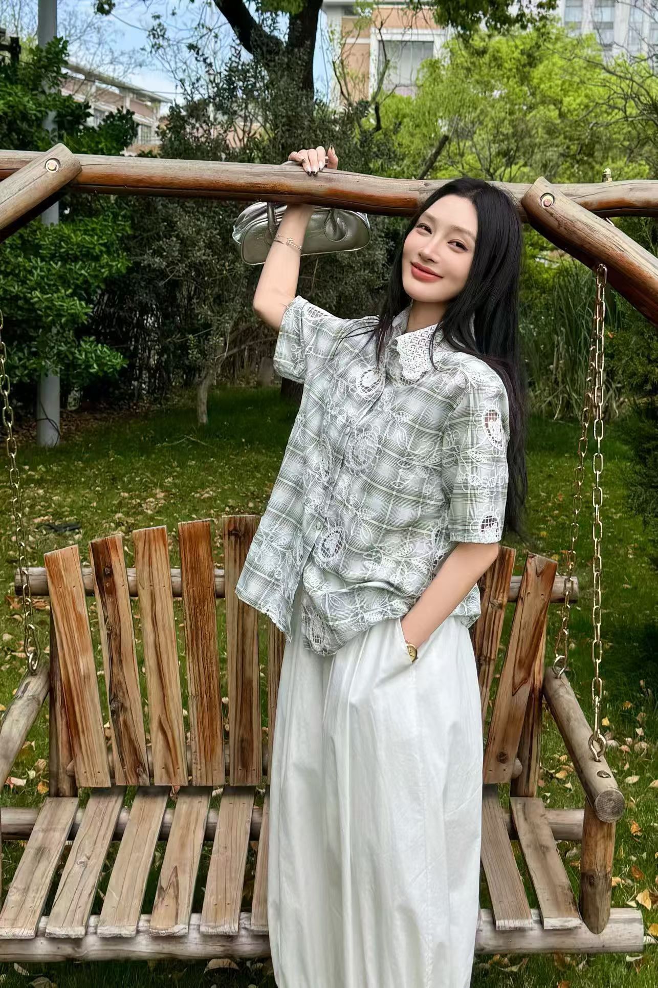 새로운 아름다운 자수 자수 자수 자수 레트로 루즈핏 반팔 셔츠 여름 드레스
