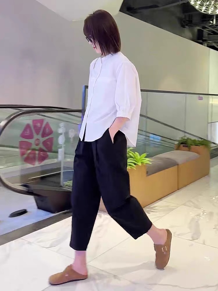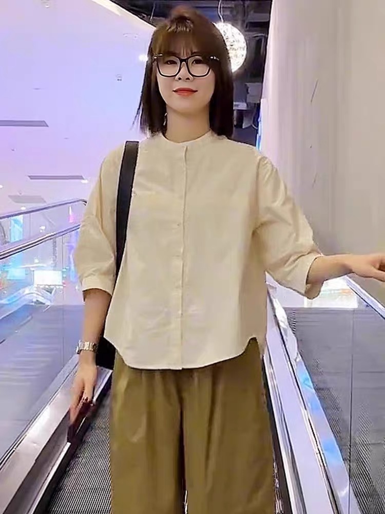 여름 드레스 새로운 빅 사이즈 여성 의류 한국 스타일 미니멀리즘 출퇴근 중간 소매 셔츠 아름다움 라드. 루즈핏 셔츠 라운드 넥 맨위