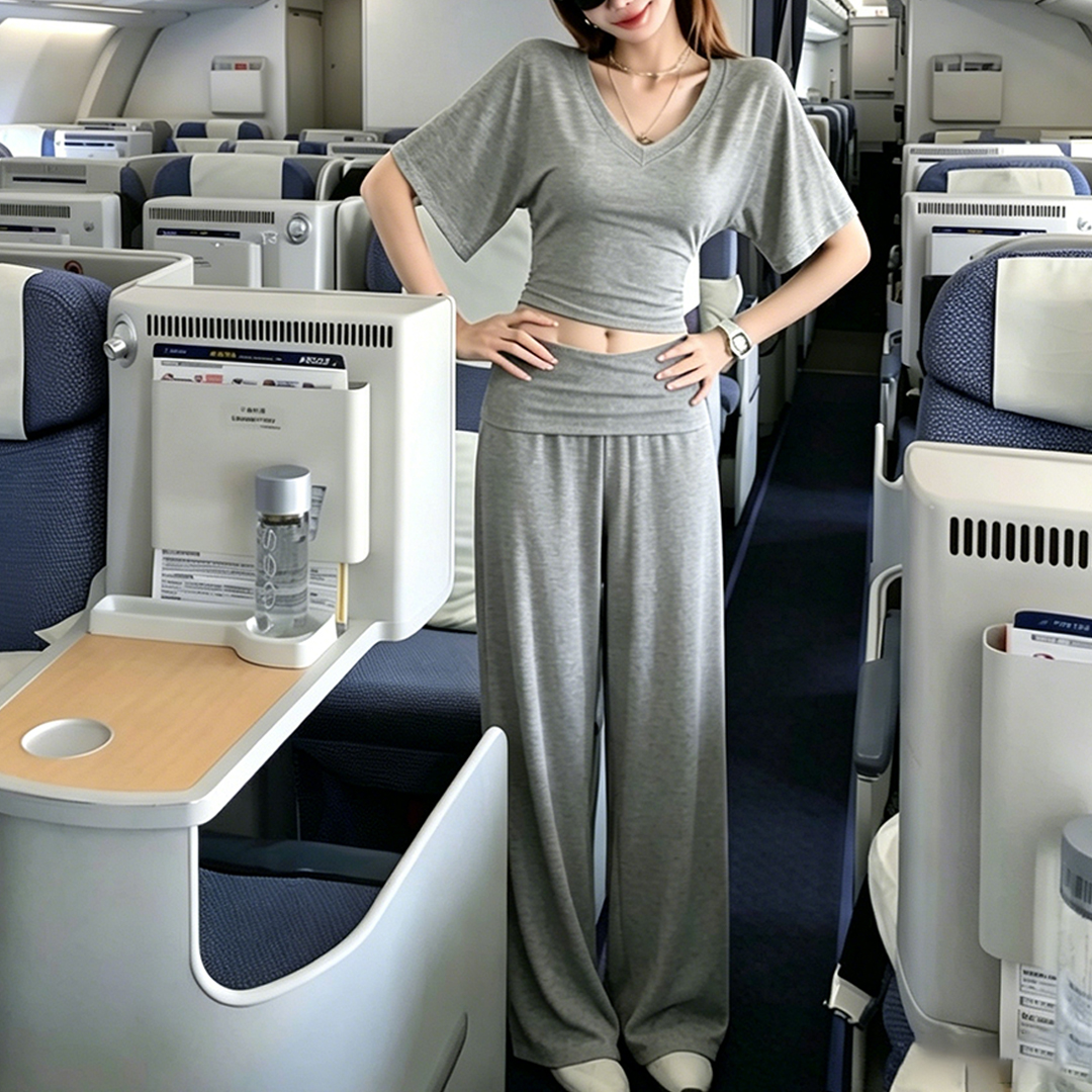 경관 그림 2026 여름 새로운 느긋한 바람 슬림해 보이는 뒤집다 허리 도루 센스 벨트 신축성 루즈핏 캐주얼 바지 투피스 세트