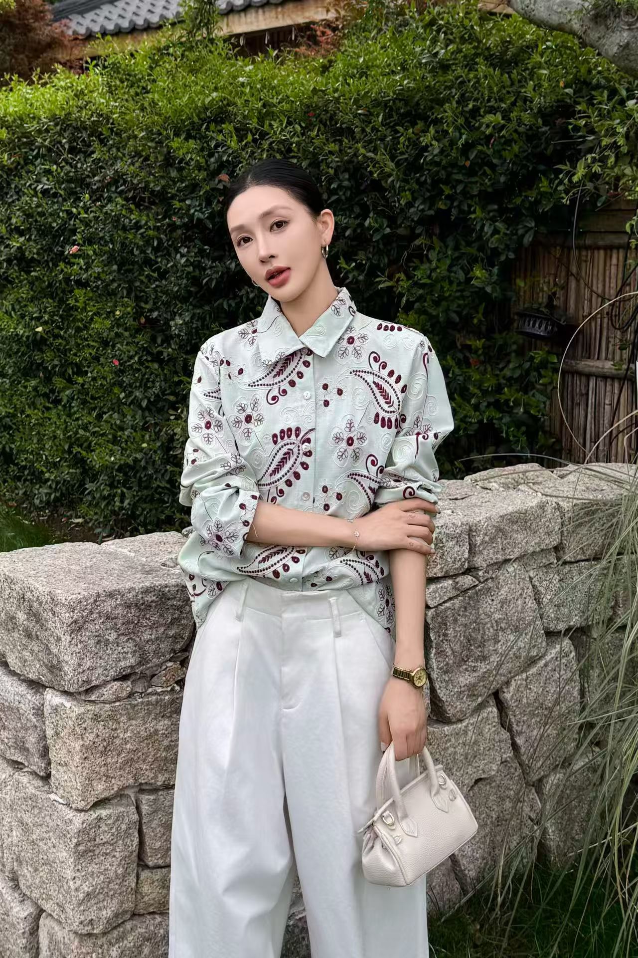 프랑스식 자수 홀로우 아웃 니트 스웨터 여성 봄 여름 긴팔 루즈핏 외국 가스 맨위