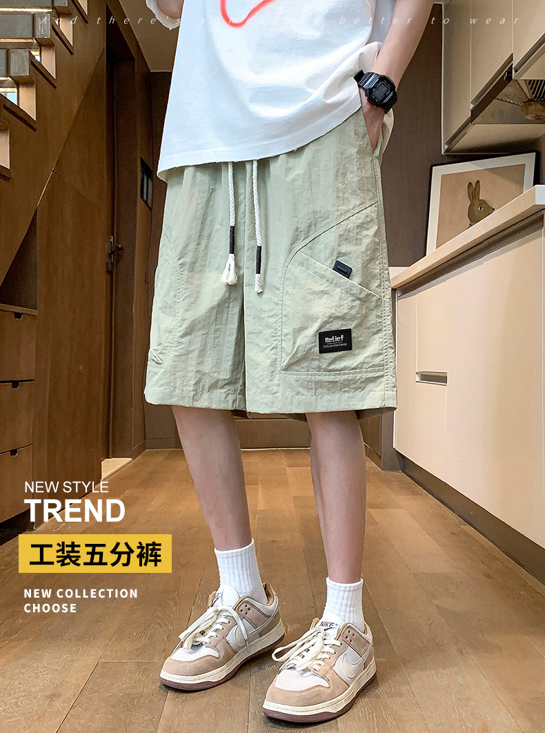 실사 여름 새로운 조수 브랜드 워크웨어 오부 바지 남자 루즈핏 다용도 허리밴드 얼음 센스 빅 포켓 캐주얼 반바지