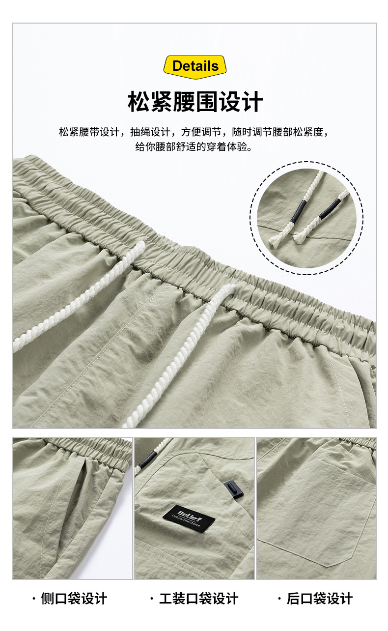 실사 여름 새로운 단색 워크웨어 오부 바지 남자 루즈핏 다용도 허리밴드 얼음 센스 빅 포켓 캐주얼 반바지