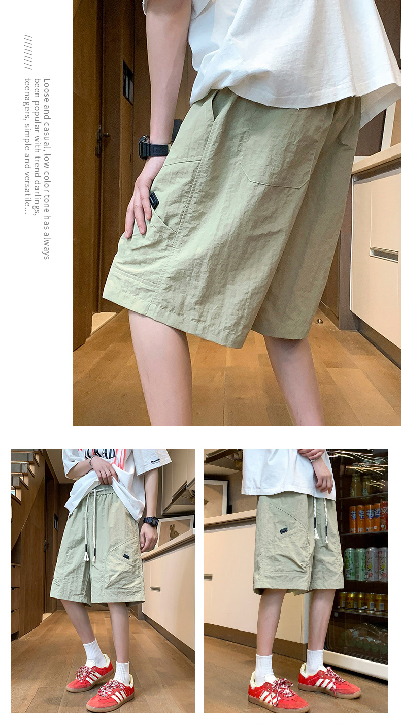실사 여름 새로운 단색 워크웨어 오부 바지 남자 루즈핏 다용도 허리밴드 얼음 센스 빅 포켓 캐주얼 반바지