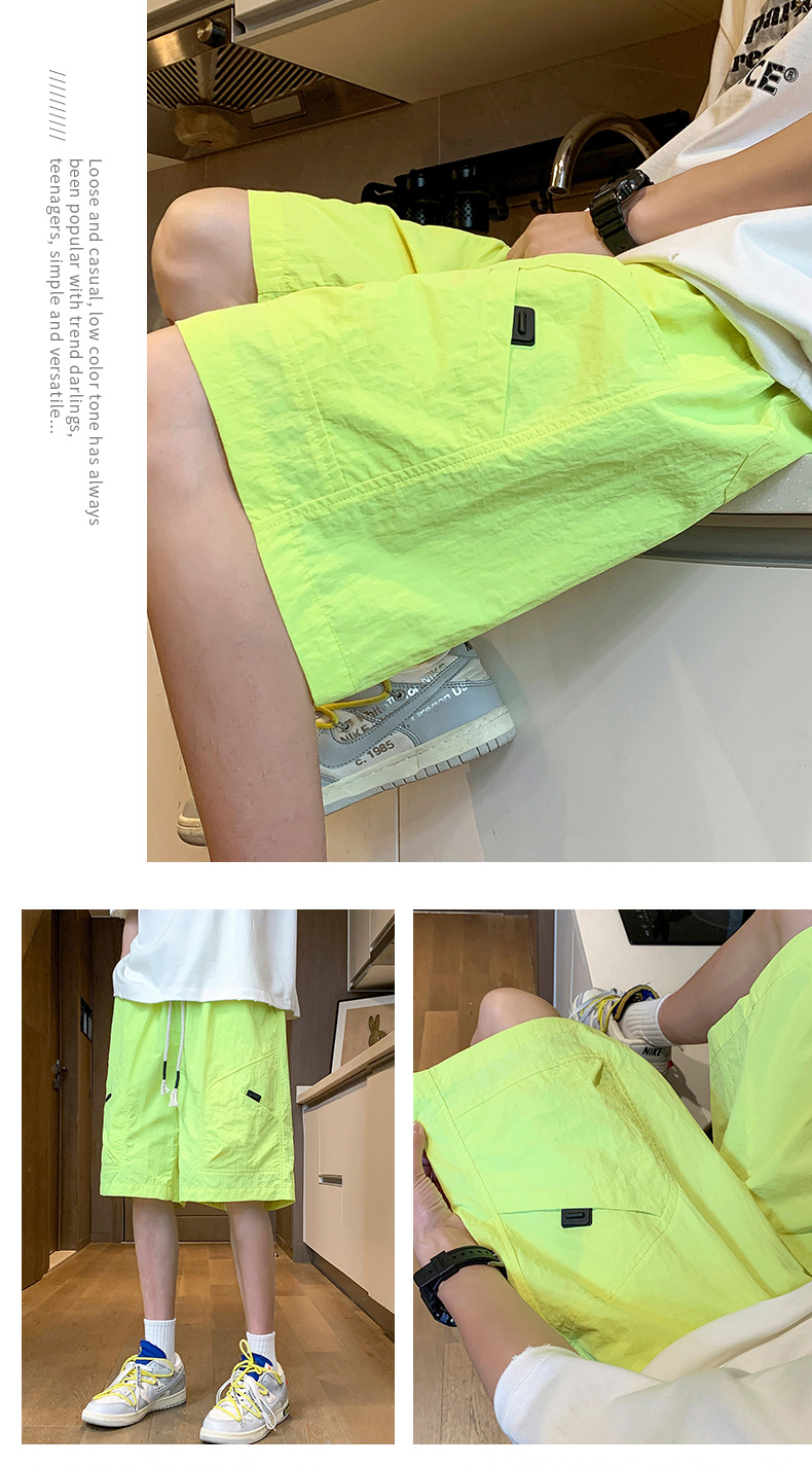 실사 여름 새로운 조수 브랜드 워크웨어 오부 바지 남자 루즈핏 다용도 허리밴드 얼음 센스 빅 포켓 캐주얼 반바지
