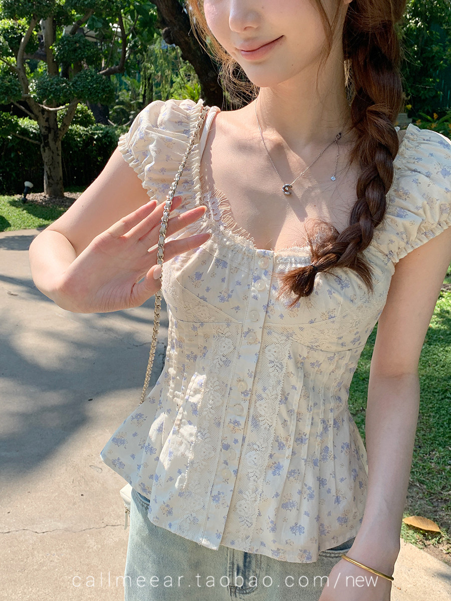 lazydidi 마가렛 4 30 신제품 프랑스식 레트로 출퇴근 레이스 조각 허리 수축 셔츠