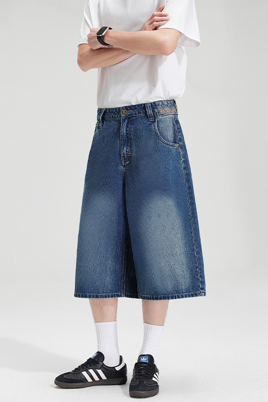 실사 2026 여름 데님 반바지 남자 얇은 스타일 바지 아메리칸 조수 브랜드 워시 물 레트로 캐주얼 오부 바지 남자