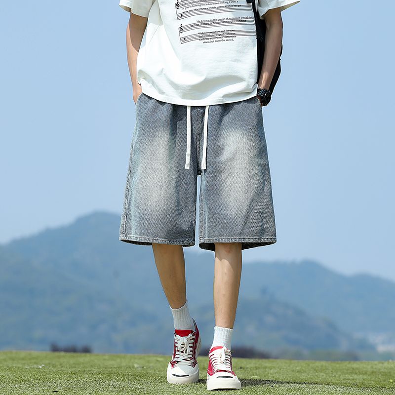 실사 2026 여름 새로운 별이 빛나는 하늘 곡물 데님 반바지 남자 얇은 스타일 조수 브랜드 루즈핏 5 점 바지
