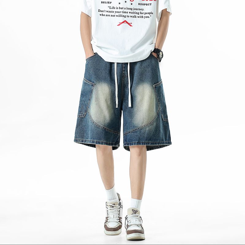 실사 2026 여름 새로운 조수 브랜드 아메리칸 청바지 반바지 남자 다용도 루즈핏 높음 거리 패치워크 오부 바지 남자