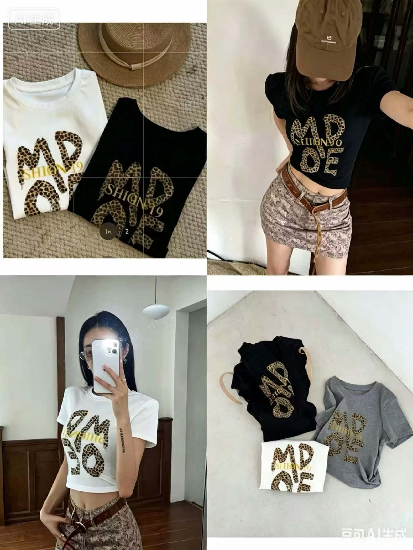 2026 여름 새로운 핫걸 연령 감소 알파벳 레오파드 무늬 프린트 반팔 라운드 넥 티셔츠 몸매 가꾸기 슬림해 보이는 인사이드 가져 가라. 여성