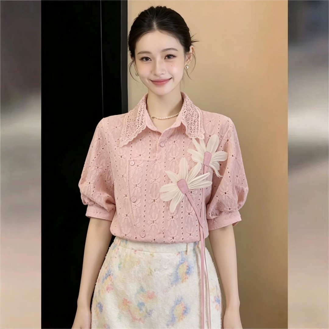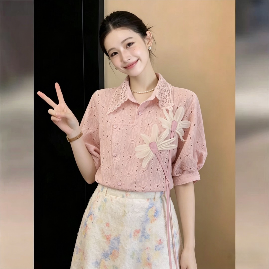 실사 프랑스식 패션 3 차원 꽃 다용도 반팔 여성 셔츠 2026 여름 부드러운 캐주얼 f 바람 셔츠