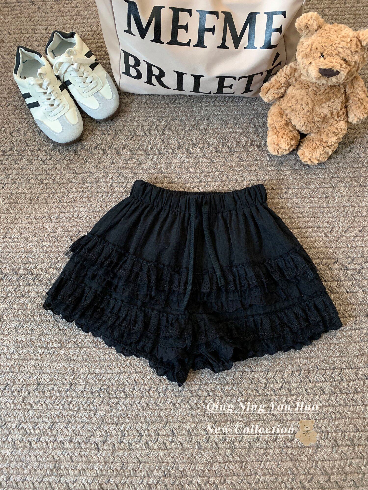발레 바람 레이스 레이스 퍼프 바지 여성 여름 섹션 레이스업 허리밴드 스트레이트 팬츠 프랑스식 아름다운 케이크 드레스